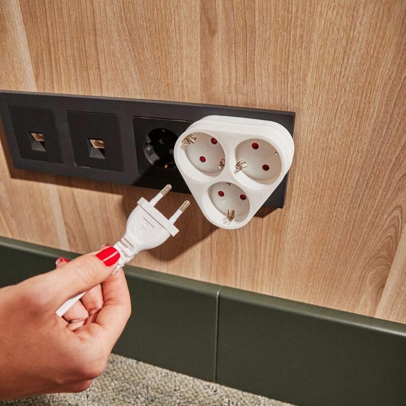 Тройник для розетки электрический с заземлением 16А, белый