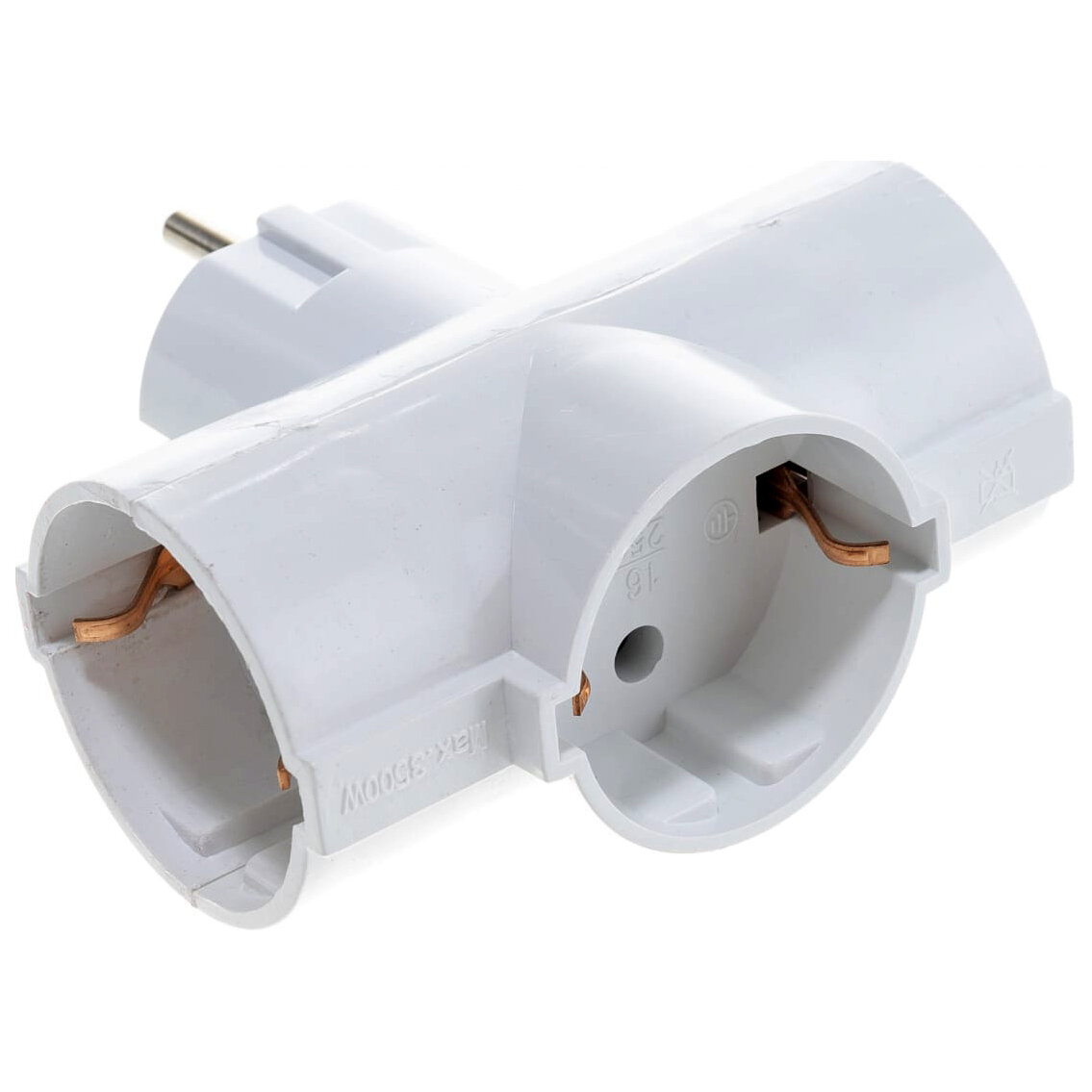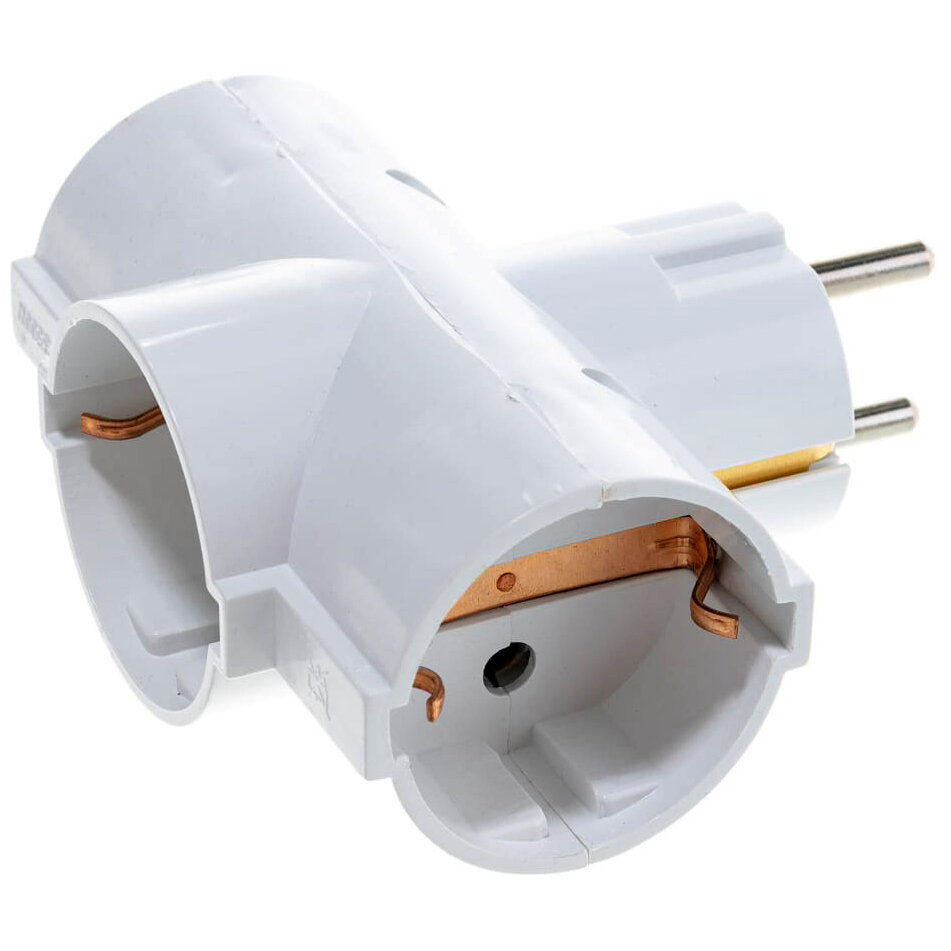 Тройник для розетки электрический с заземлением 16А, белый
