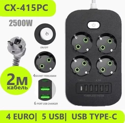 Сетевой фильтр удлинитель на 4 розетки с USB, USB TYPE-C интересное:
