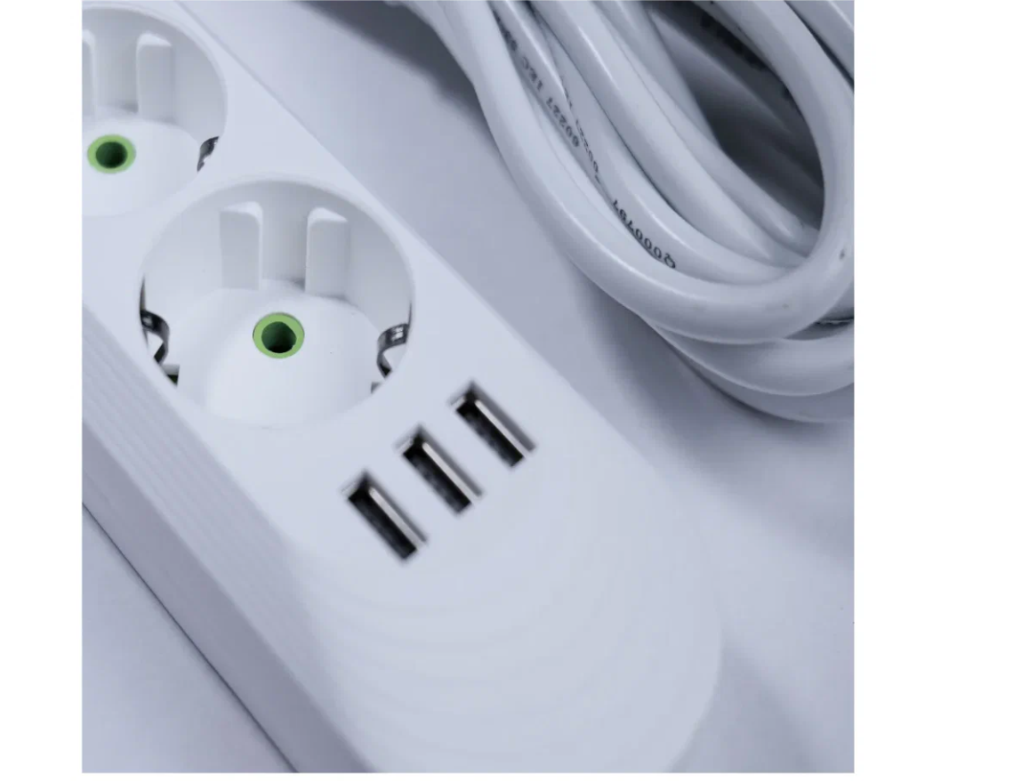 Купить Сетевой фильтр, М, 5 розетки, 3 USB, 5 метра, белый, 10А , QL-1073U-5M