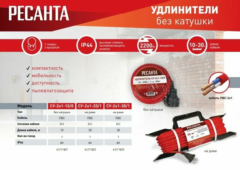 СохранитьУдлинитель силовой на раме, СУ-2х1-30/1 (IP44) Ресанта интересное: