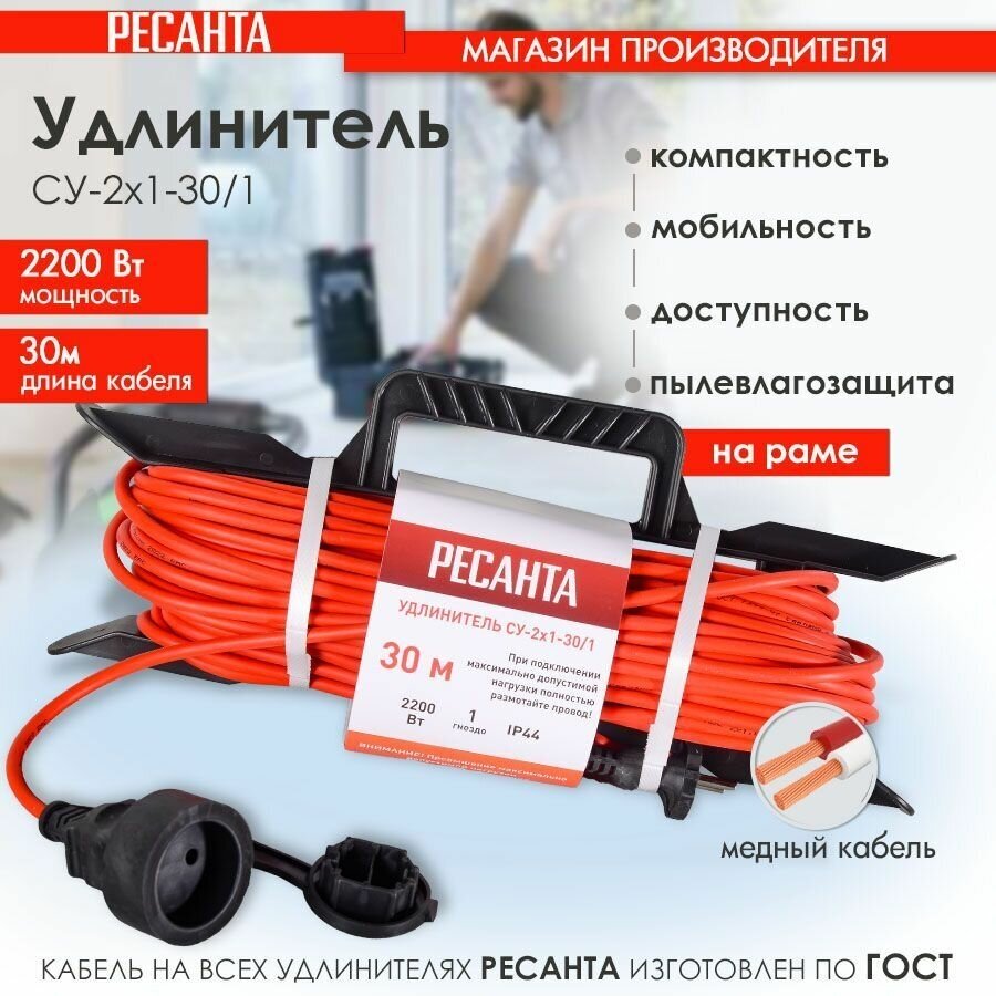 Удлинитель сетевой на раме, СУ-2х1-30/1, (IP44), 30 м Ресанта электротовар