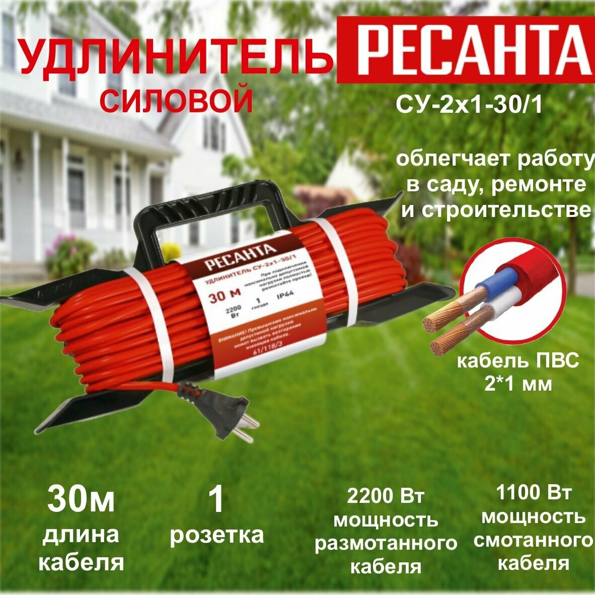Удлинитель силовой на катушке Ресанта СУ-2х1-30/2ВР
