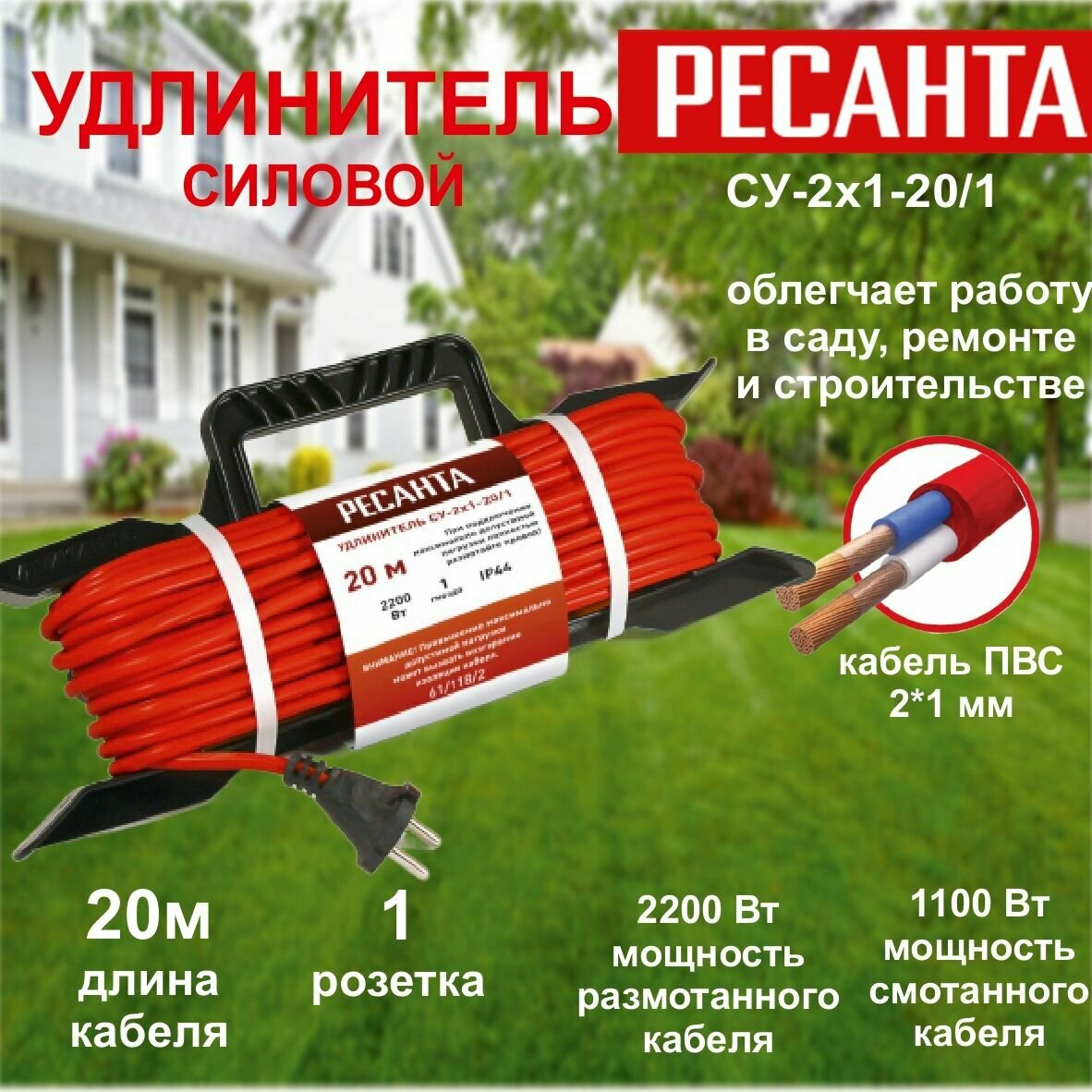 Удлинитель РЕСАНТА СУ-2х1-10/0 // 10м, силовой