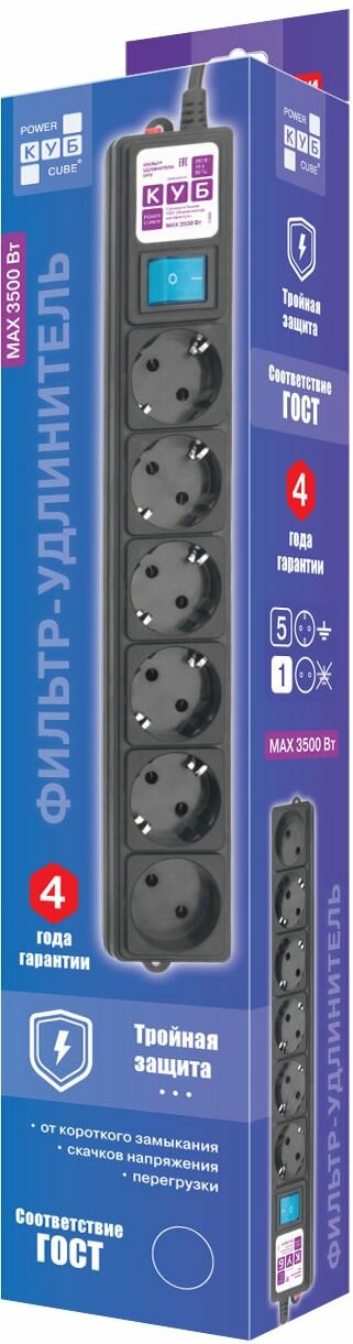 Сетевой фильтр Power Cube 1.9м 6 розеток (черный) интересное: