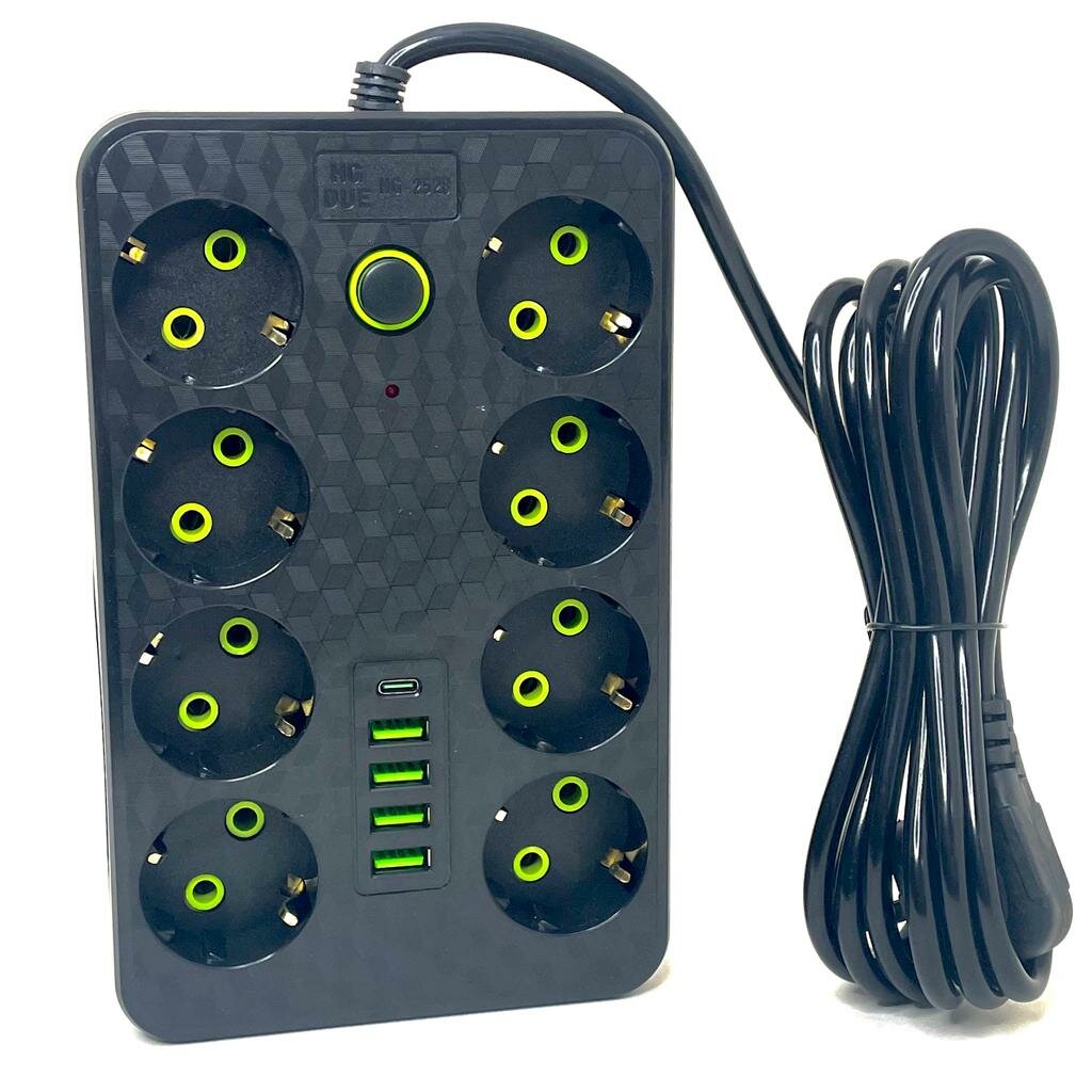 Купить Сетевой фильтр с 8 гнездами и 4 USB 1 Type-C, удлинитель бытовой 3метра 4 USB проёма, Универсальный удлинитель для дома 3 м 4 USB 1 Type-C