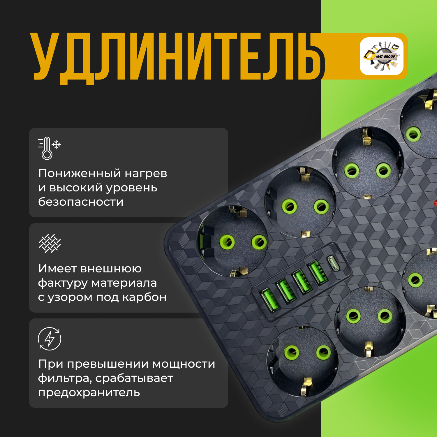 СохранитьСетевой фильтр с 8 гнездами и 4 USB 1 Type-C, удлинитель бытовой 3метра 4 USB проёма, Универсальный удлинитель для дома 3 м 4 USB 1 Type-C интересное: