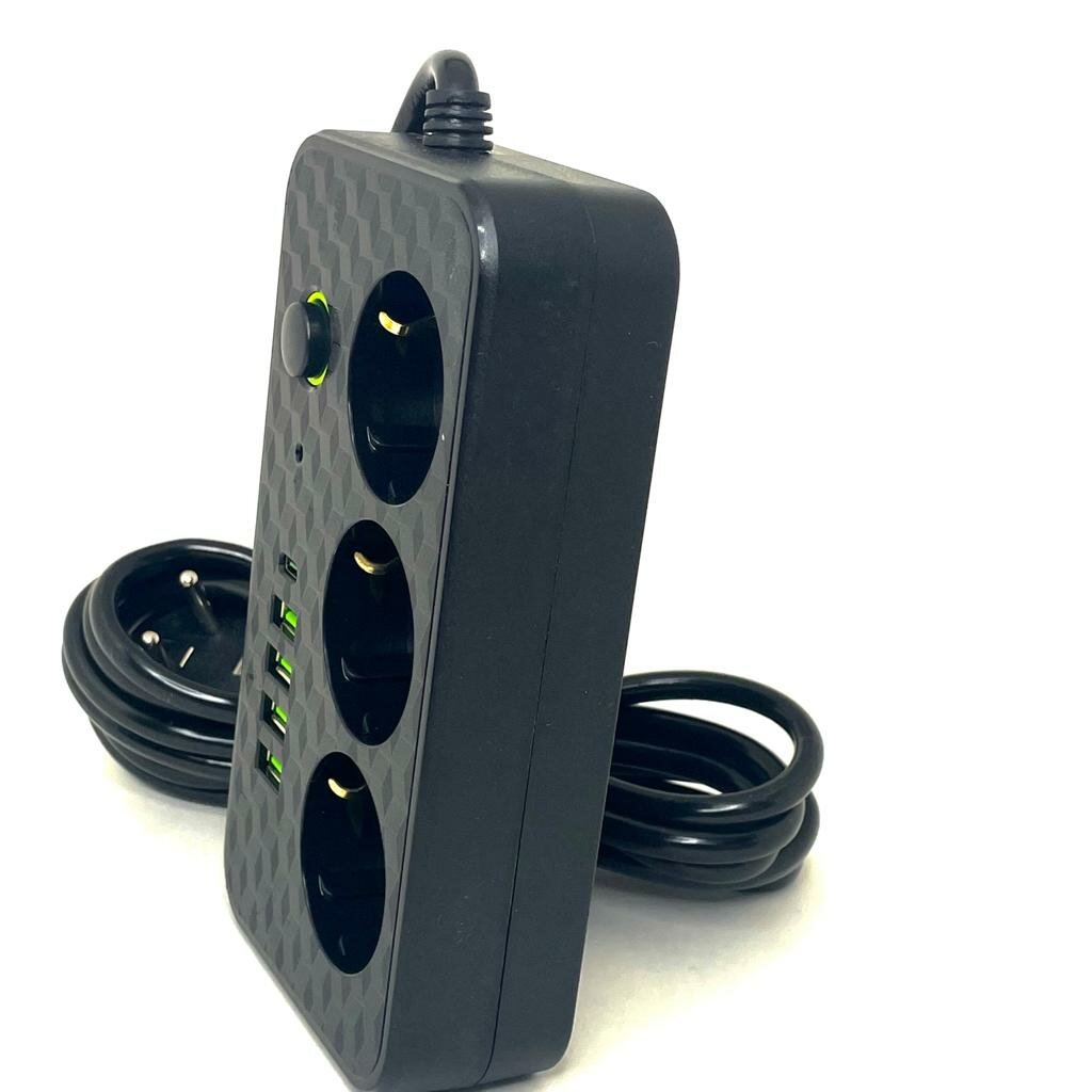 Купить Сетевой фильтр с 3 гнездами и 4 USB 1 Type-C, удлинитель бытовой 3метра 4 USB проёма, Универсальный удлинитель для дома 3 м 4 USB 1 Type-C
