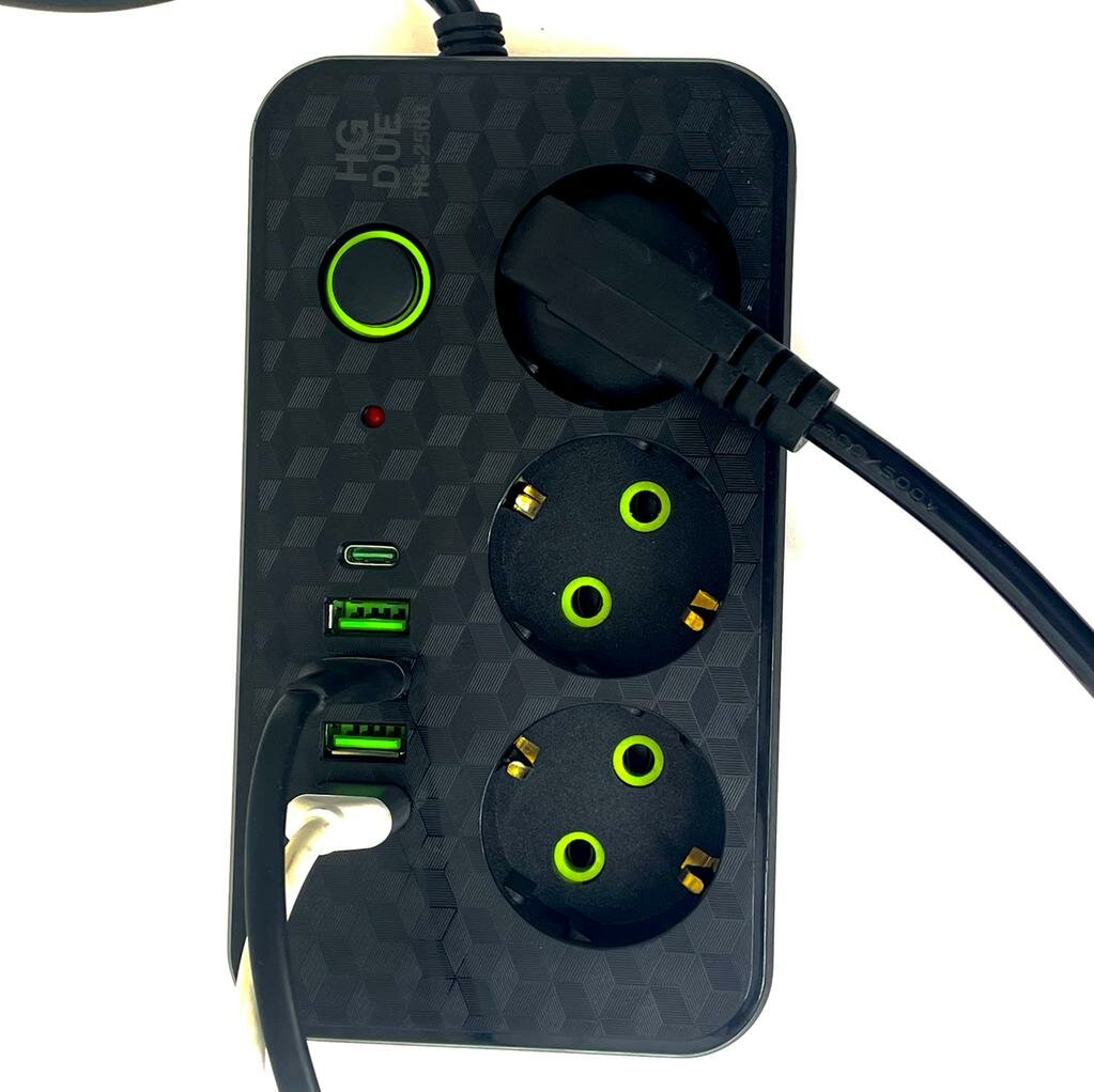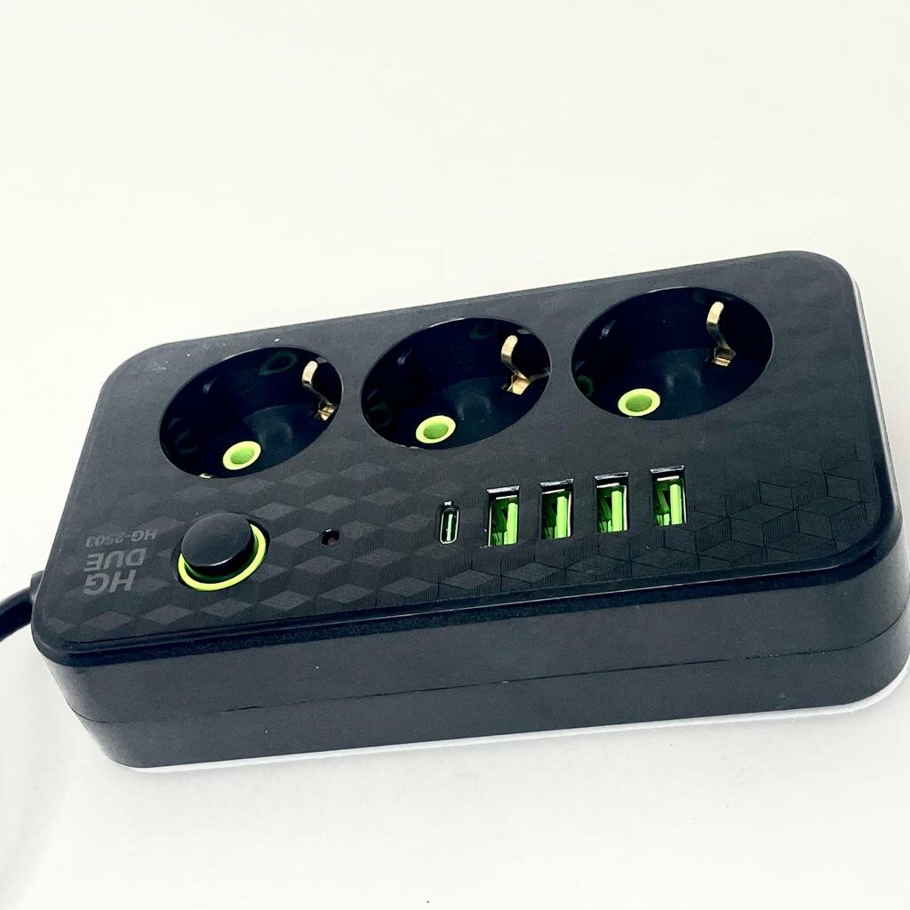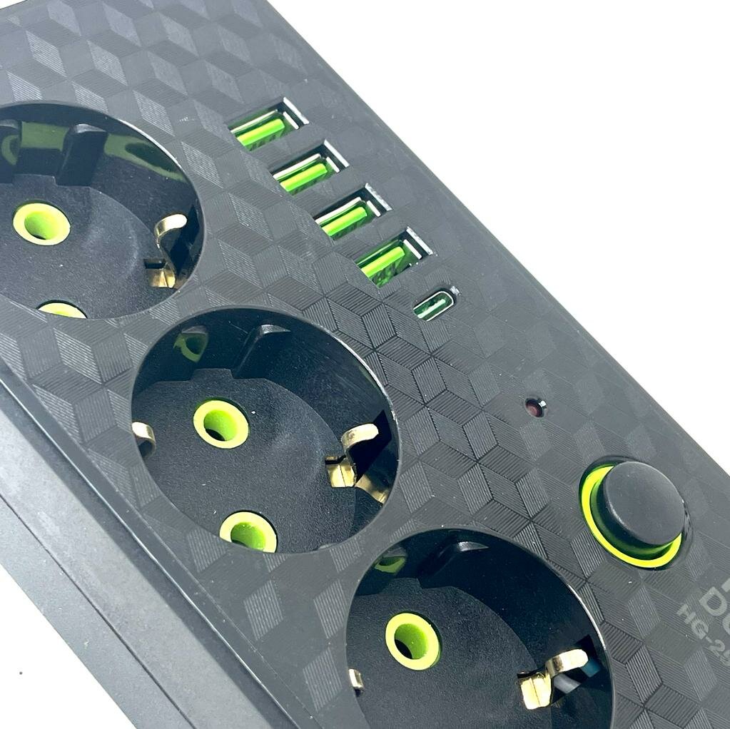 Сетевой фильтр с 6 гнездами и 2 USB 1 Type-C, удлинитель бытовой 3метра 2 USB проёма, Универсальный удлинитель для дома 3 м 2 USB 1 Type-C