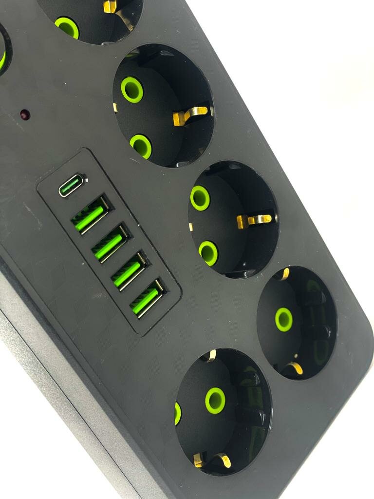 Сетевой фильтр с 8 гнездами и 4 USB 1 Type-C, удлинитель бытовой 3метра 4 USB проёма, Универсальный удлинитель для дома 3 м 4 USB 1 Type-C