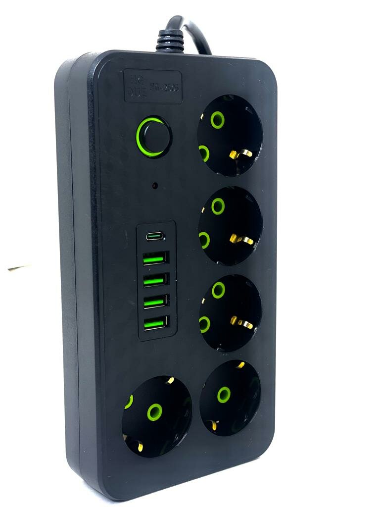 Купить Сетевой фильтр с 5 гнездами и 4 USB 1 Type-C, удлинитель бытовой 3метра 4 USB проёма, Универсальный удлинитель для дома 3 м 4 USB 1 Type-C