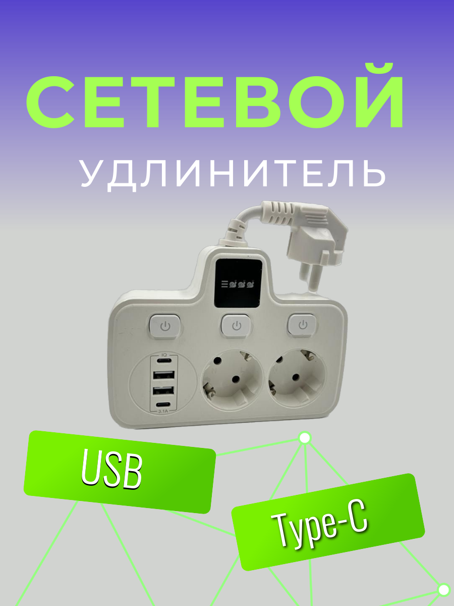 СохранитьСетевой удлинитель 2 розетки, 2 USB, 2 Type-C белый от GadFamily_Shop интересное: