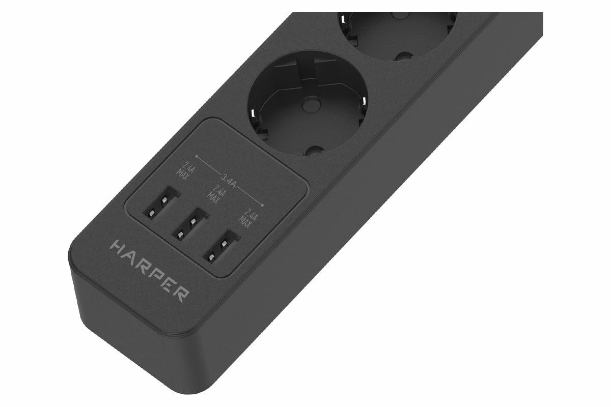 Купить Сетевой фильтр с USB зарядкой Harper UCH-550Black (5 роз.,5м.,3 x USB 2.4A (max 3.4A), 4000W)