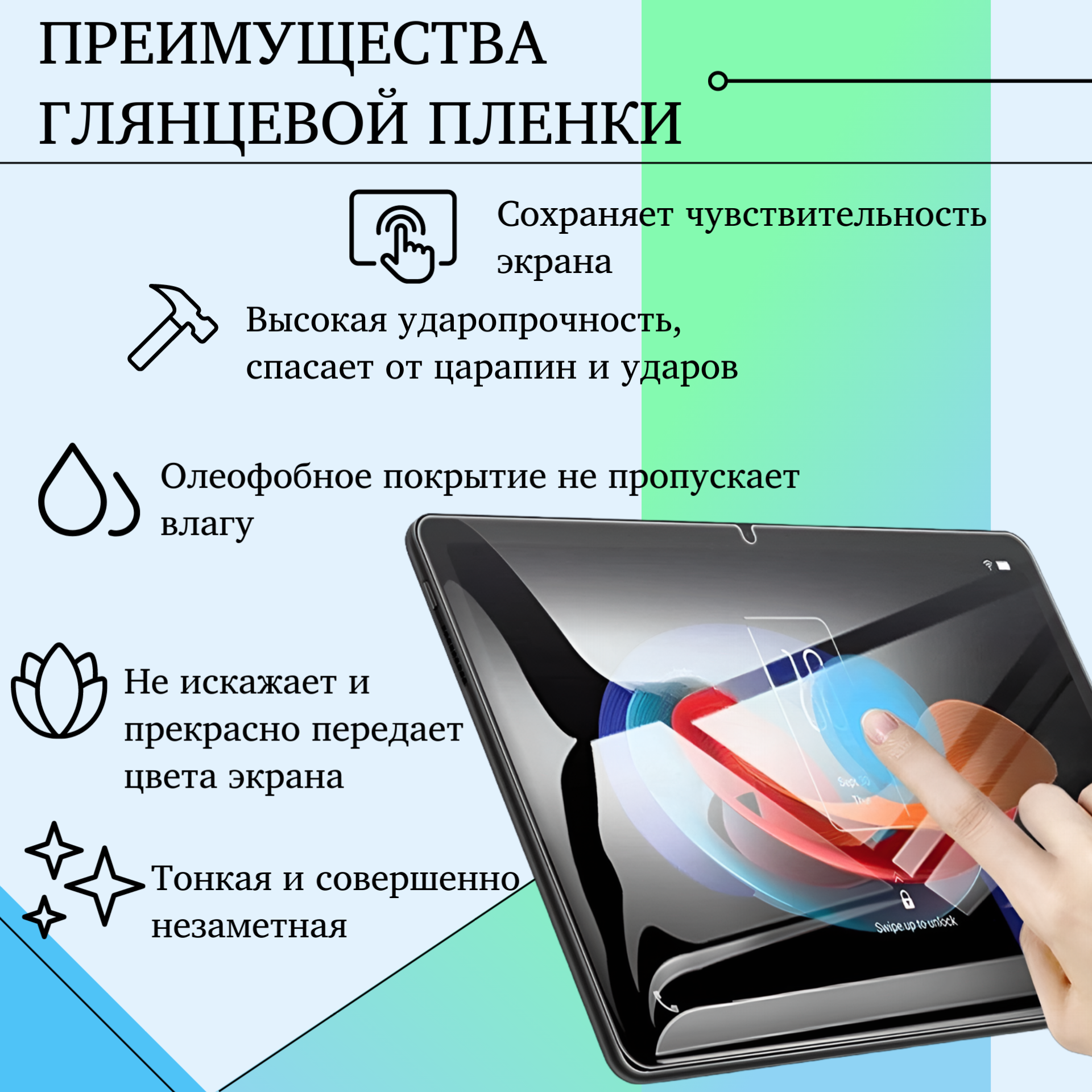 | Особенности | гидрогелевая, глянцевая, прозрачная |