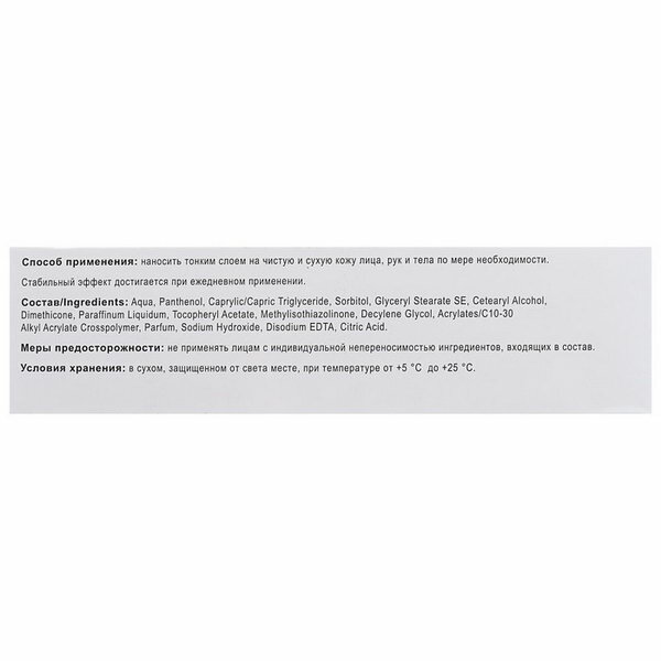 | Плюсы: | Придаёт коже эластичность, интенсивно увлажняет, смягчает и успокаивает, устраняет сухость и шелушение. Способствует ускорению процессов регенерации тканей, помогает быстро восстановить защитный барьер кожи. |