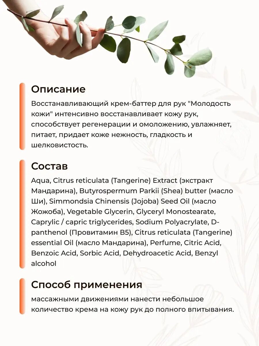 Крем-баттер для рук Восстанавливающий Молодость кожи, 50 мл