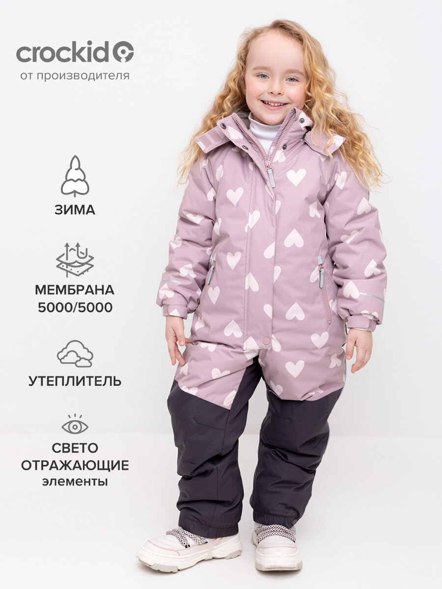 Комбинезон зимний мембранный для девочки, Crockid ВК 60123/н/1 ГР (92-122) р 104-110/56/52