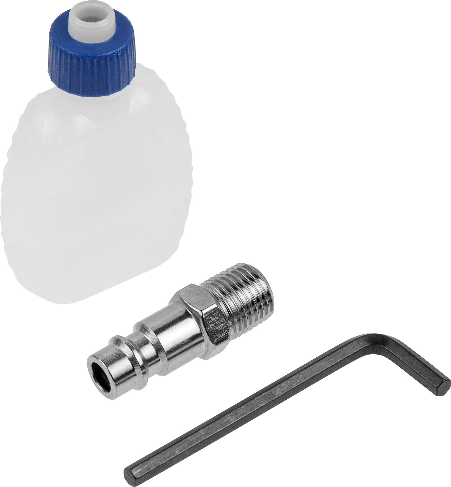 | Комплектация | сменные головки 1/2" на 9, 10, 11, 13, 14, 17, 19, 22, 24, 27 мм – всего 10 шт, удлинитель 1/2" на 125 мм - 1 шт, мини масленка – 1 шт., ключ шестигранный на 5 мм – 1 шт, ниппель – 1 шт, компрессорное масло – 1 тюбик, пластмассовый чемодан |