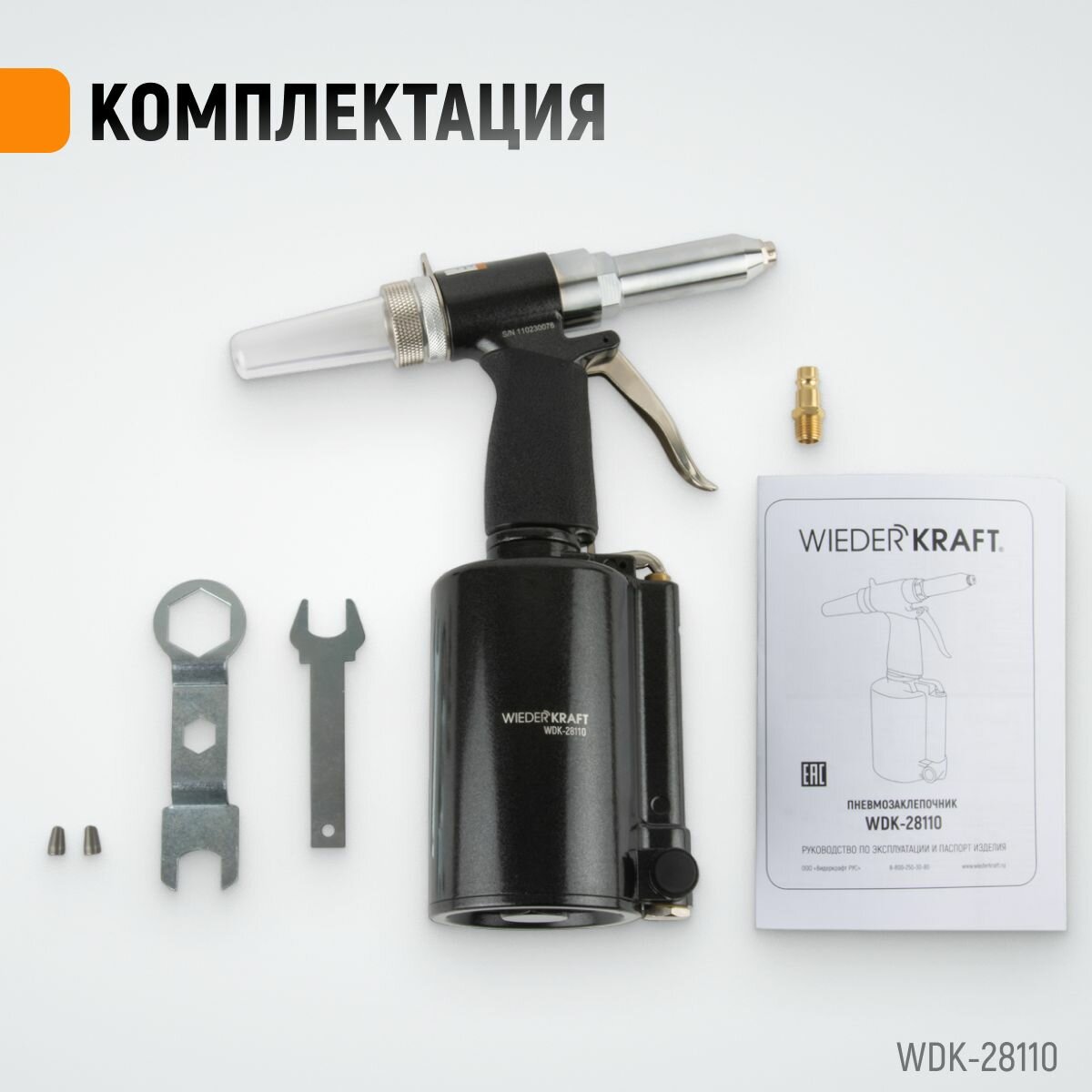 Купить WIEDERKRAFT Пневмогидравлический заклепочник 2.4, 3.2, 4.0, 4.8, 6.4 мм, усилие 14000 n WDK-28110