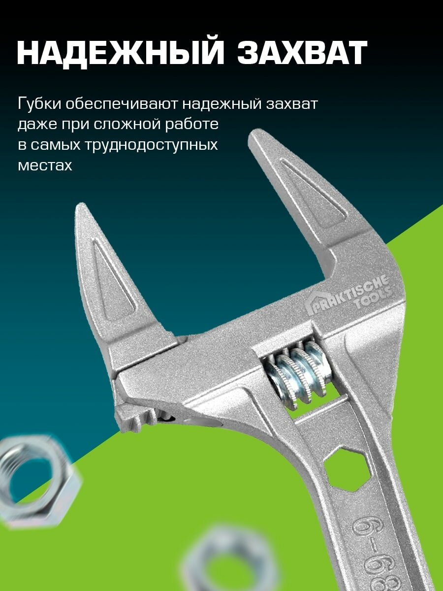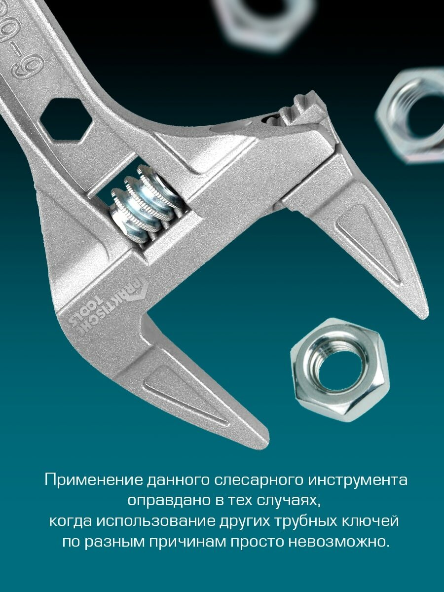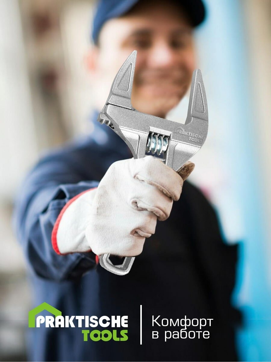 Ключ разводной сантехнический, укороченная рукоятка, раскрытие губок до 68 мм, 200 мм `PRAKTISCHE TOOLS` интересное: