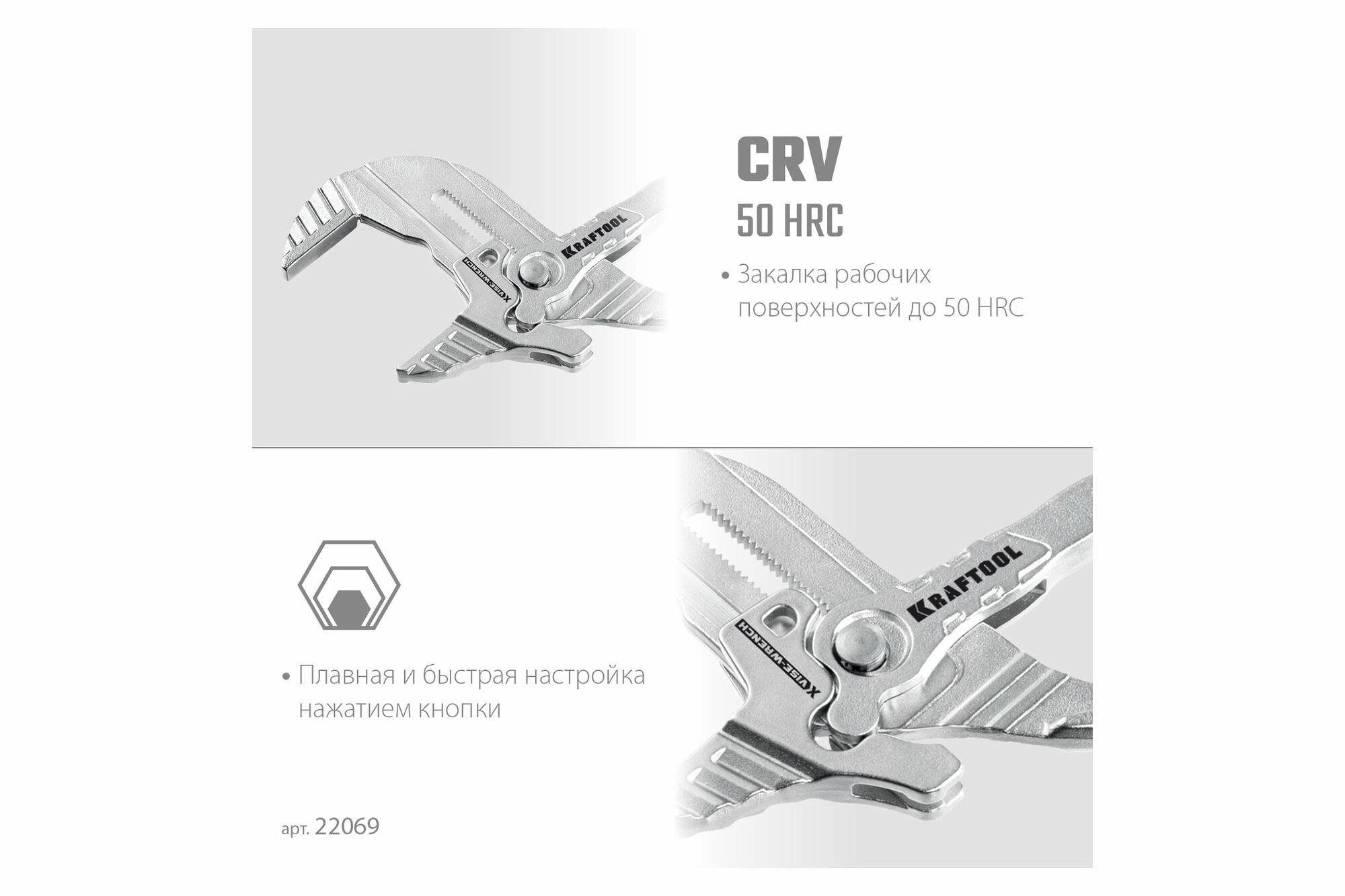 KRAFTOOL VISE-WRENCH X 300 мм, Клещи переставные-гаечный ключ (22069) (22069)