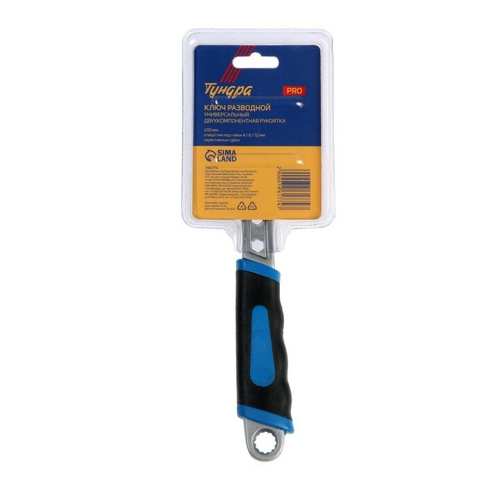 Купить Ключ разводной тундра PRO, 2 варианта зажима, гайки 4-6-12 мм, 2К рукоятка, 200 мм