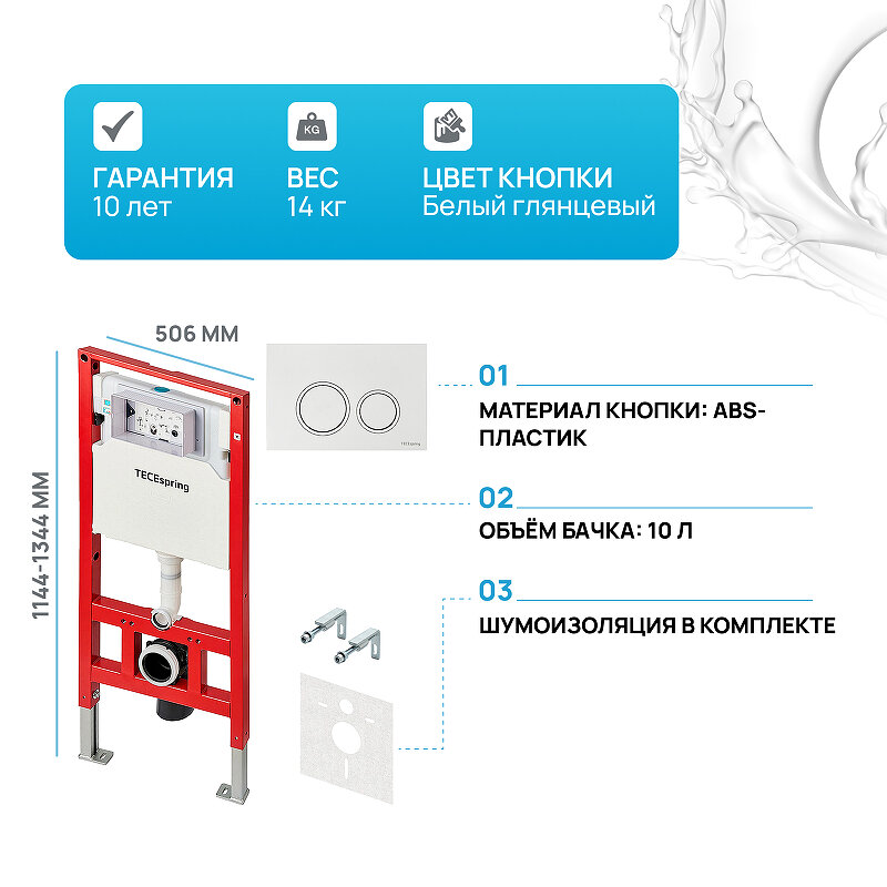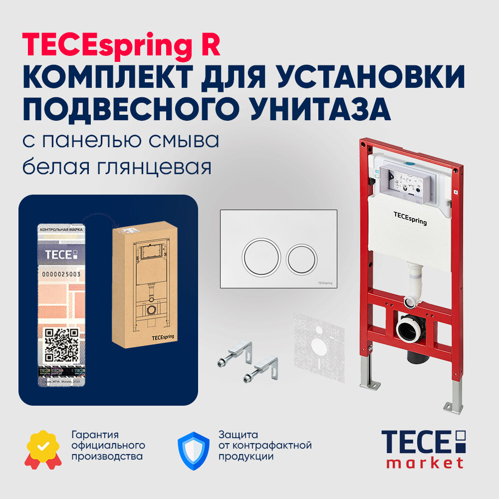 Система инсталляции для унитазов TECE TECEspring S955103 4 в 1 с кнопкой смыва глянцевый белый