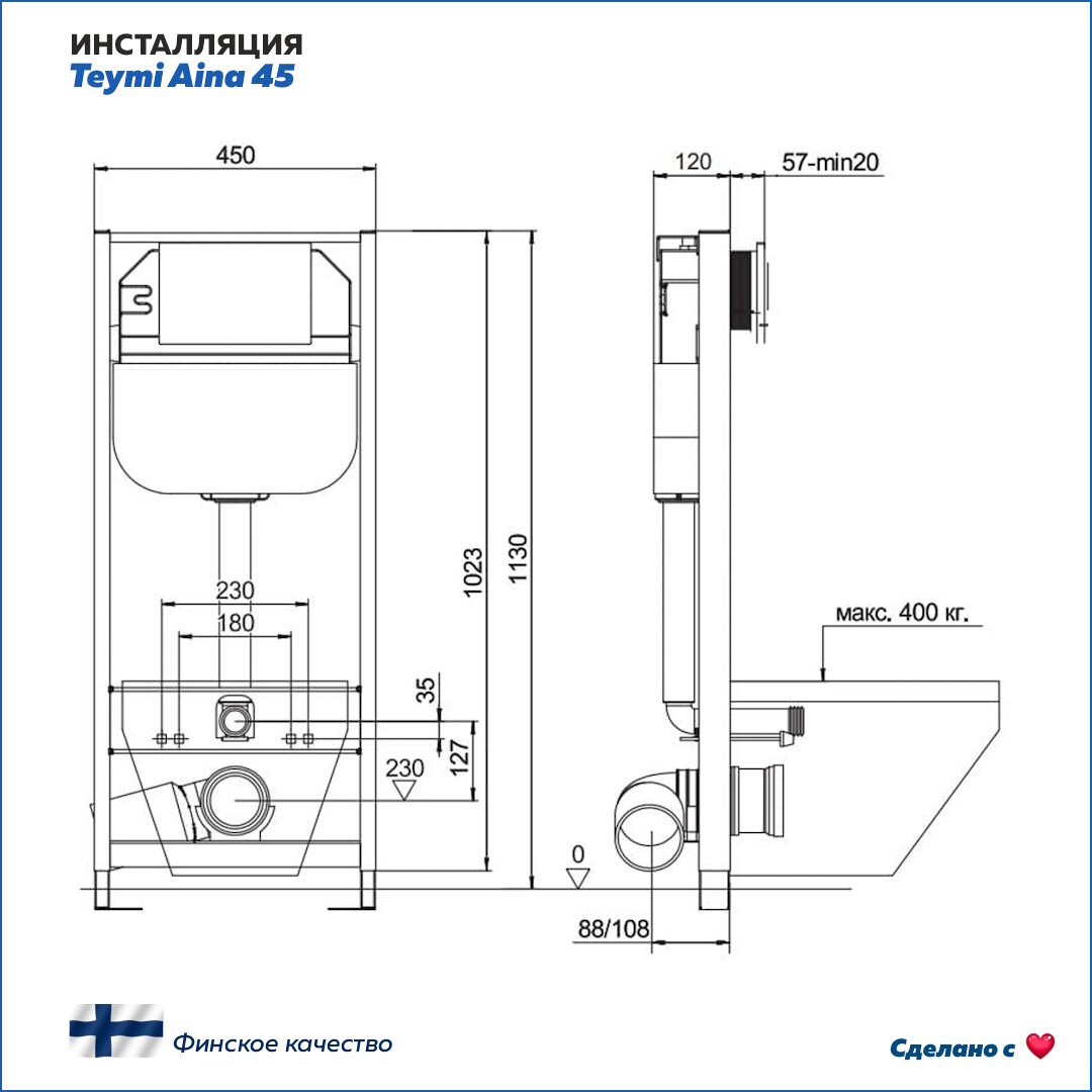 Готовое решение Teymi: Инсталляция Aina 45 + клавиша смыва Lina белая + унитаз Lina Vortex F01399 интересное: