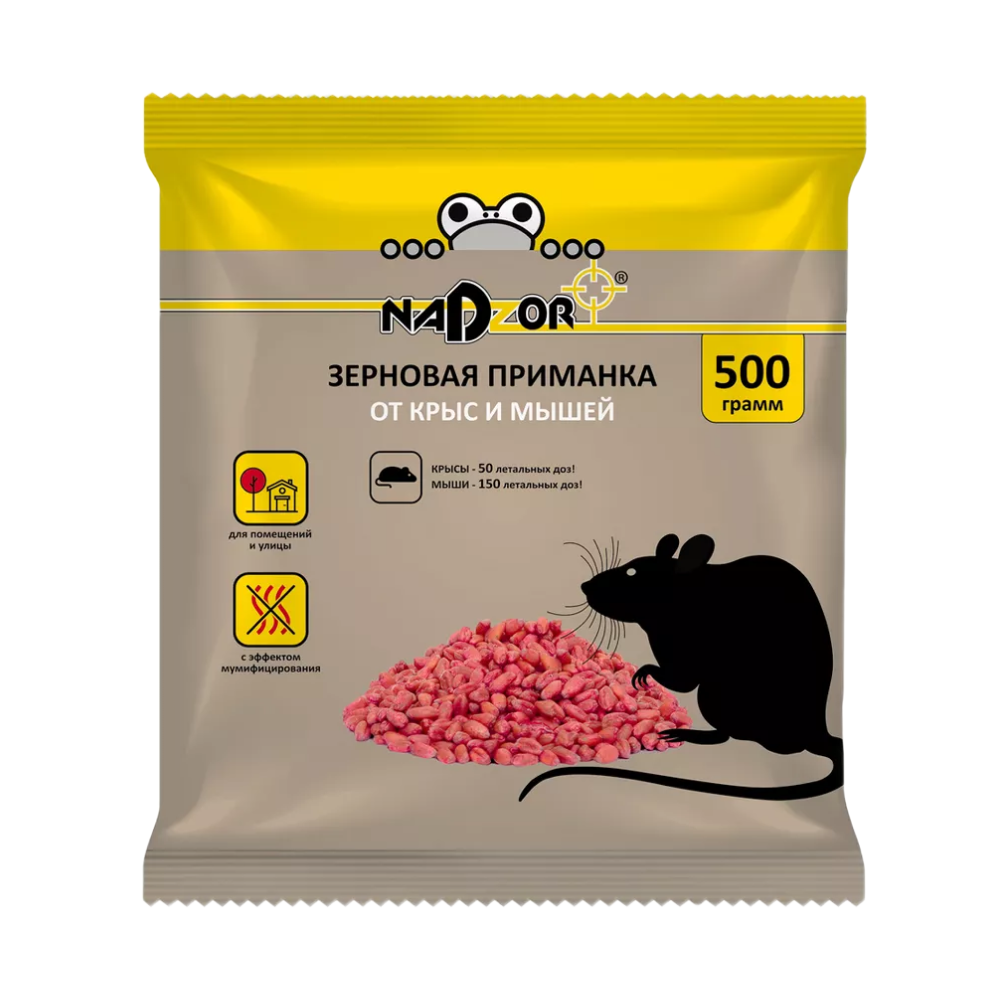 Купить Nadzor Отрава для мышей и крыс, средство в форме зерна мумифицирующее, 500г.