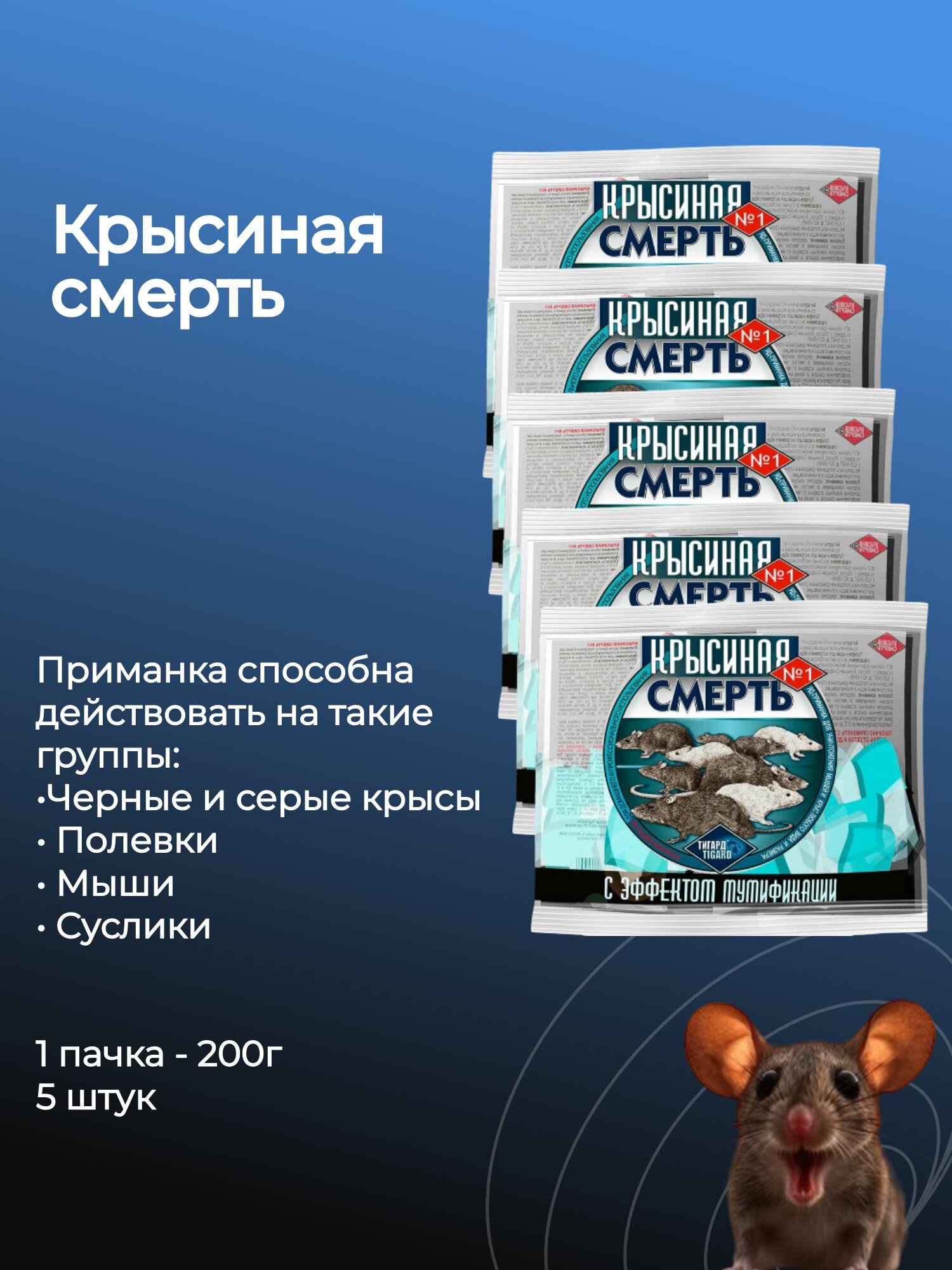 Крысиная Смерть № 1 Средство родентицидное от грызунов "Крысиная Смерть № 1", 200 г