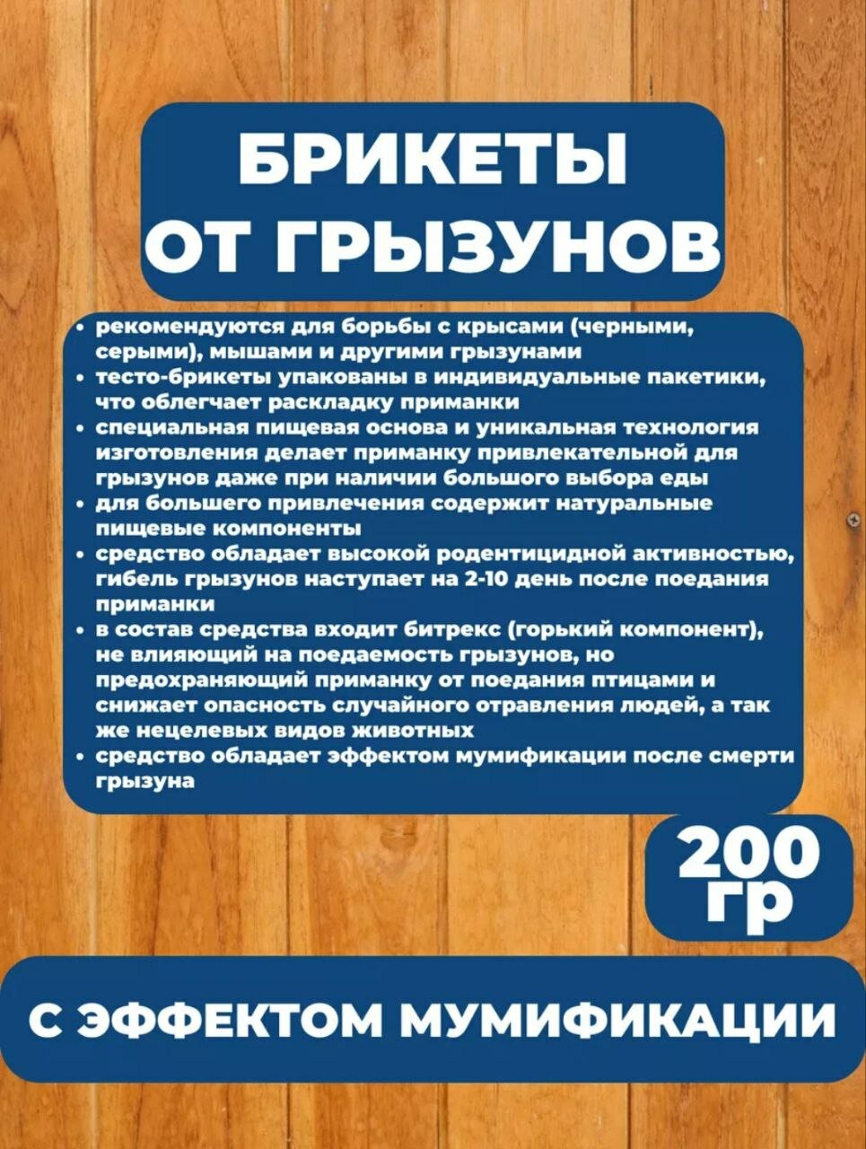 Тесто-сырные брикеты от крыс и мышей 200г. Вкус мяса и сыра.