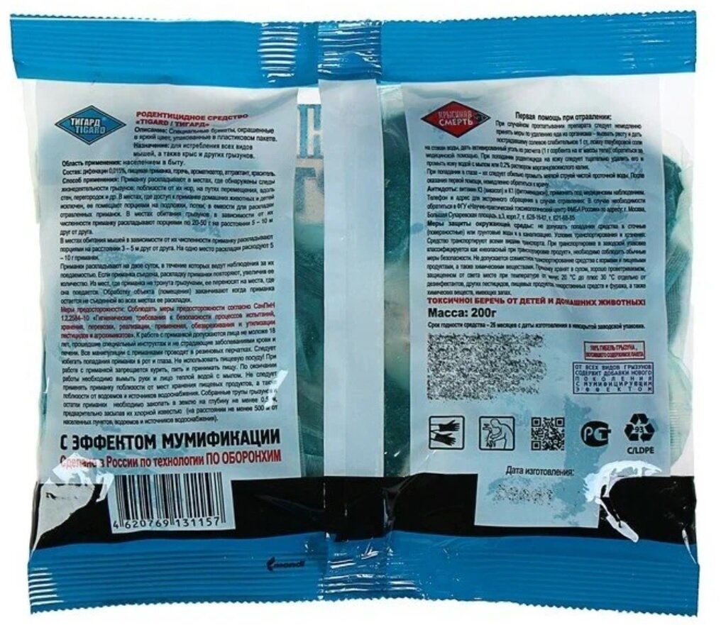 Средство Тигард Крысиная Смерть № 1 тесто-брикет, пакет, 0.2 кг, 0.2 л, 10 шт.