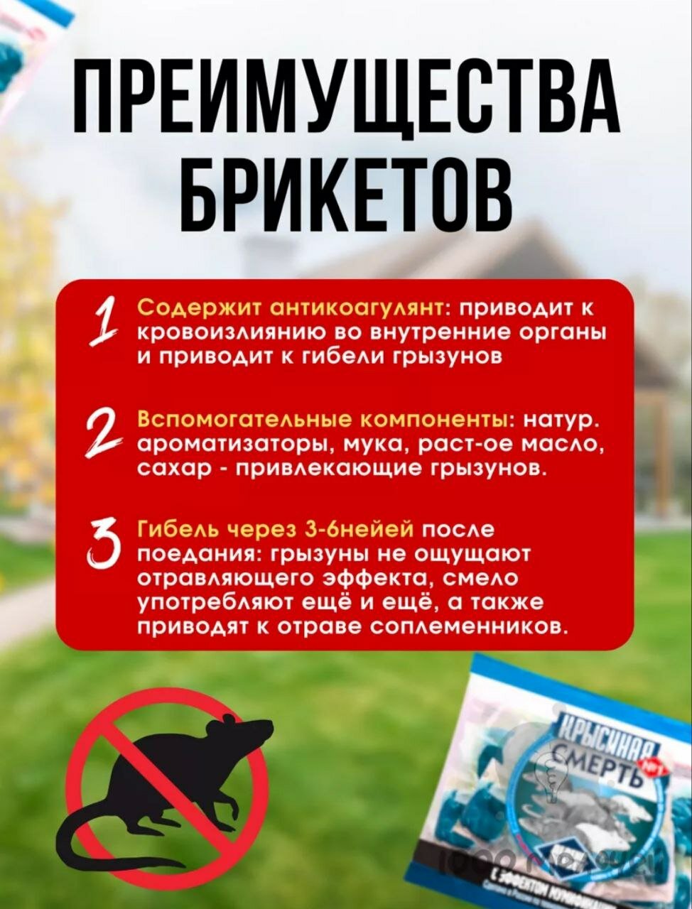 Средство от мышей и крыс Тигард Крысиная Смерть № 1 тесто-брикет 5 шт. 1 кг интересное: