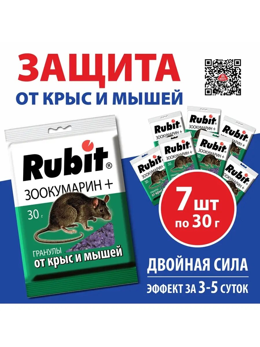Комплект средство от крыс и мышей гранулы ЗООКУМАРИН+ 30г*7шт Рубит интересное: