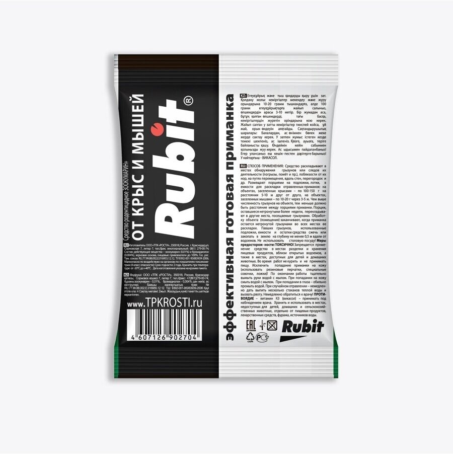 | Способ применения | Средство раскладывают в местах обнаружения грызунов или следов их деятельности (погрызы, помёт и пр.), поблизости от их нор, на путях перемещения, вдоль стен, перегородок и др. Размещают порциями на подложки, лотки, в емкости для раскладки отравленных приманок: на объектах, заселенных крысами – по 100-150 г на расстоянии 5-10 м друг от друга, на объектах, заселенных мышами – по 10-20 г через 3-5 м. Чем выше численность грызунов на объекте, тем меньше должно быть расстояние между порциями приманки. Порции, оставшиеся нетронутыми более недели, перекладывают в другие места, посещаемые грызунами. Обработку объекта (помещения) заканчивают, когда приманка остается нетронутой грызунами во всех местах ее раскладки. Павших грызунов, использованные подложки, емкости и остатки средства сжечь или закопать в землю на глубину не менее 0,5 м вдали от водоемов |