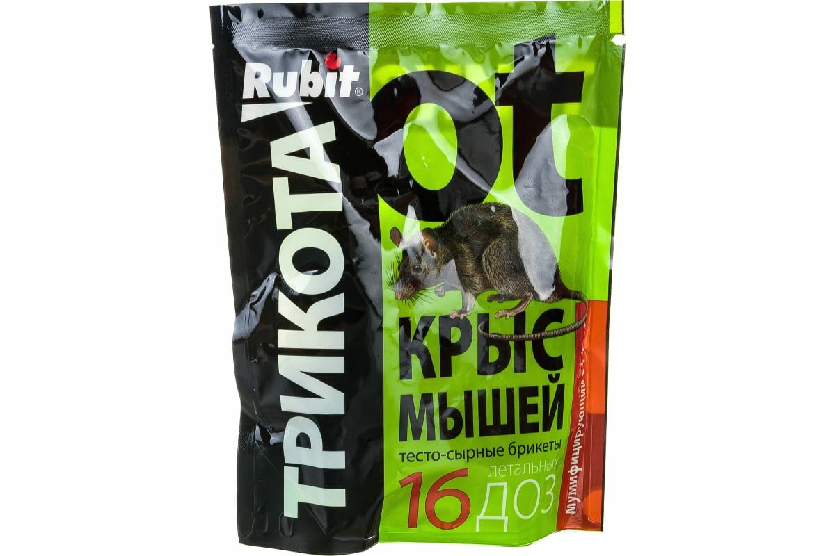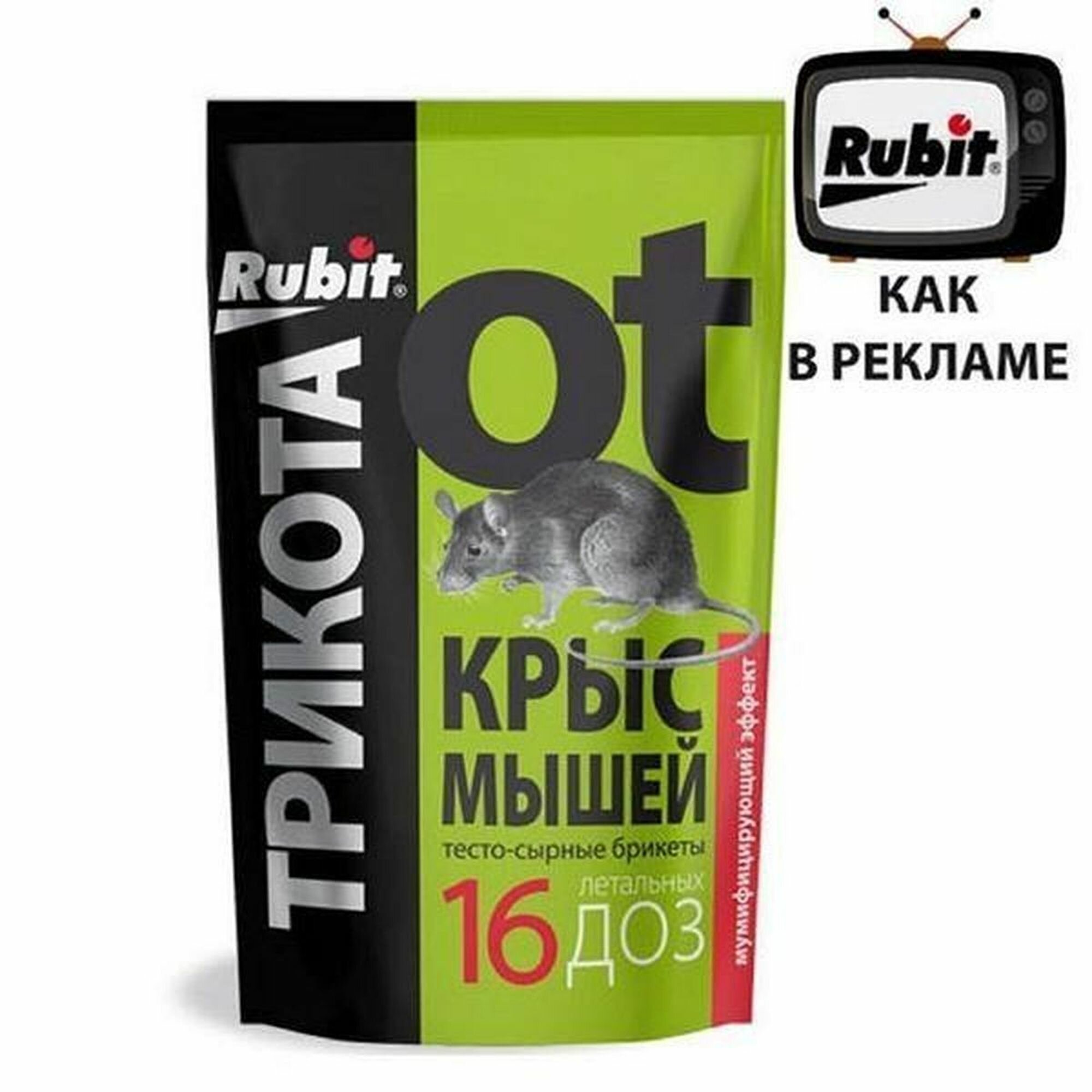 Средство против грызунов крыс и мышей Rubit ТриКота тесто-сырные брикеты мумифицирующий эффект 16 доз 150г