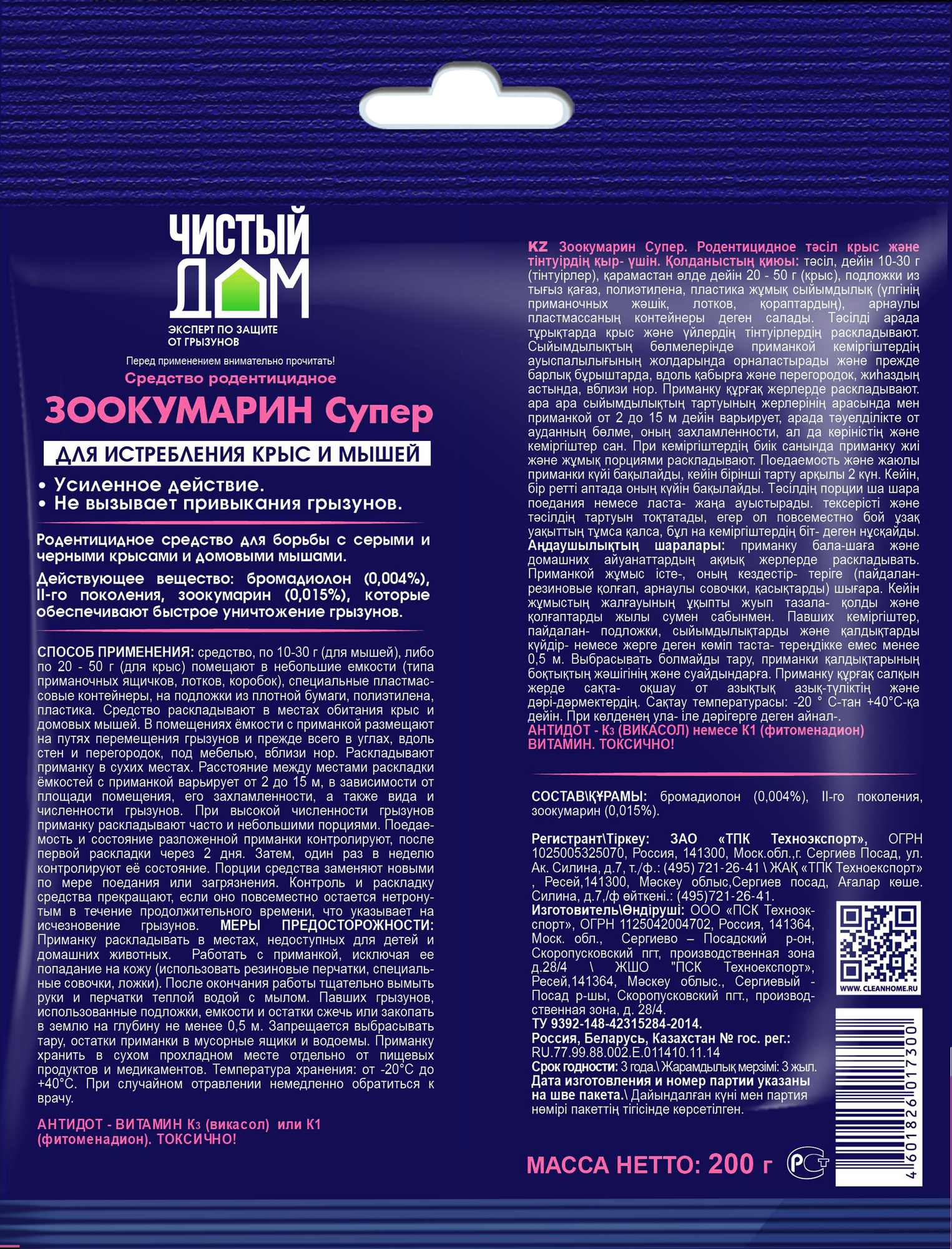 Средство от крыс Чистый Дом Зоокумарин супер гранулы 200 гр., 2 упаковки