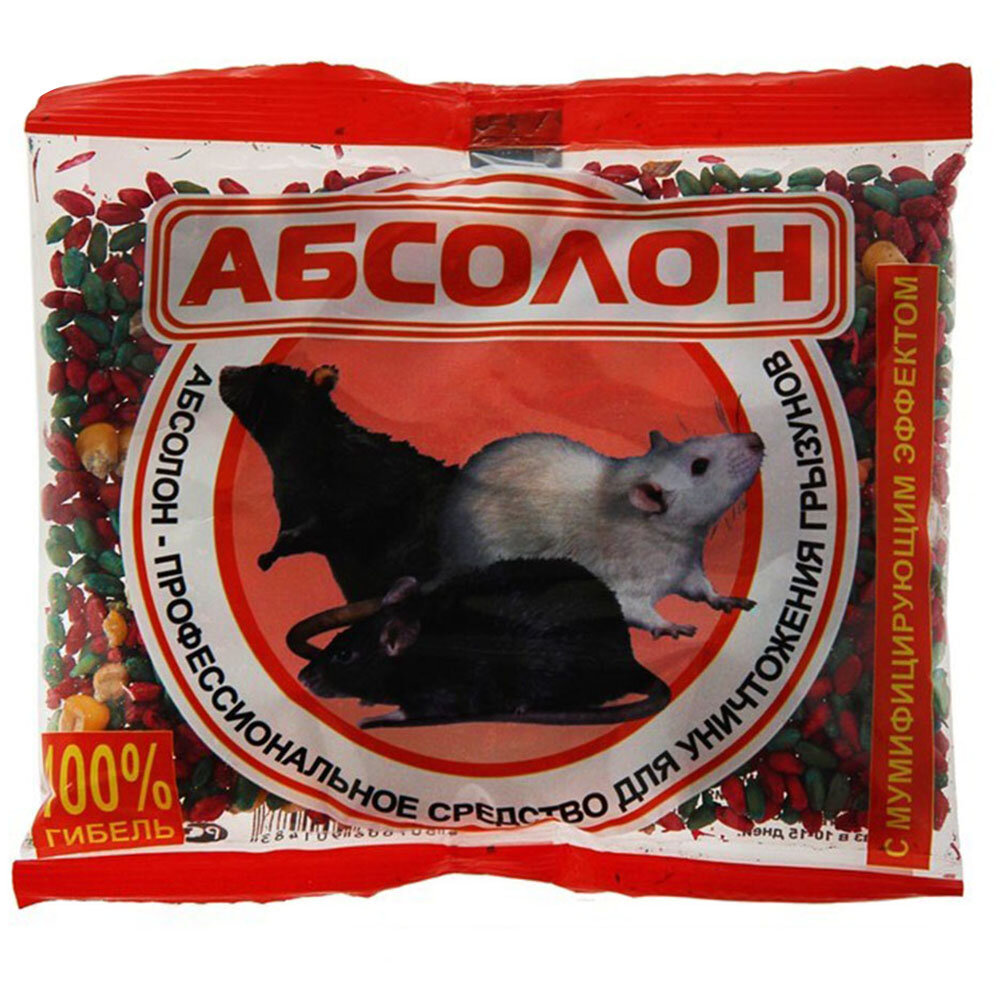 Приманка зерновая для уничтожения грызунов мумифицирующая 100 г, абсолон, пакет, АЛП100 интересное: