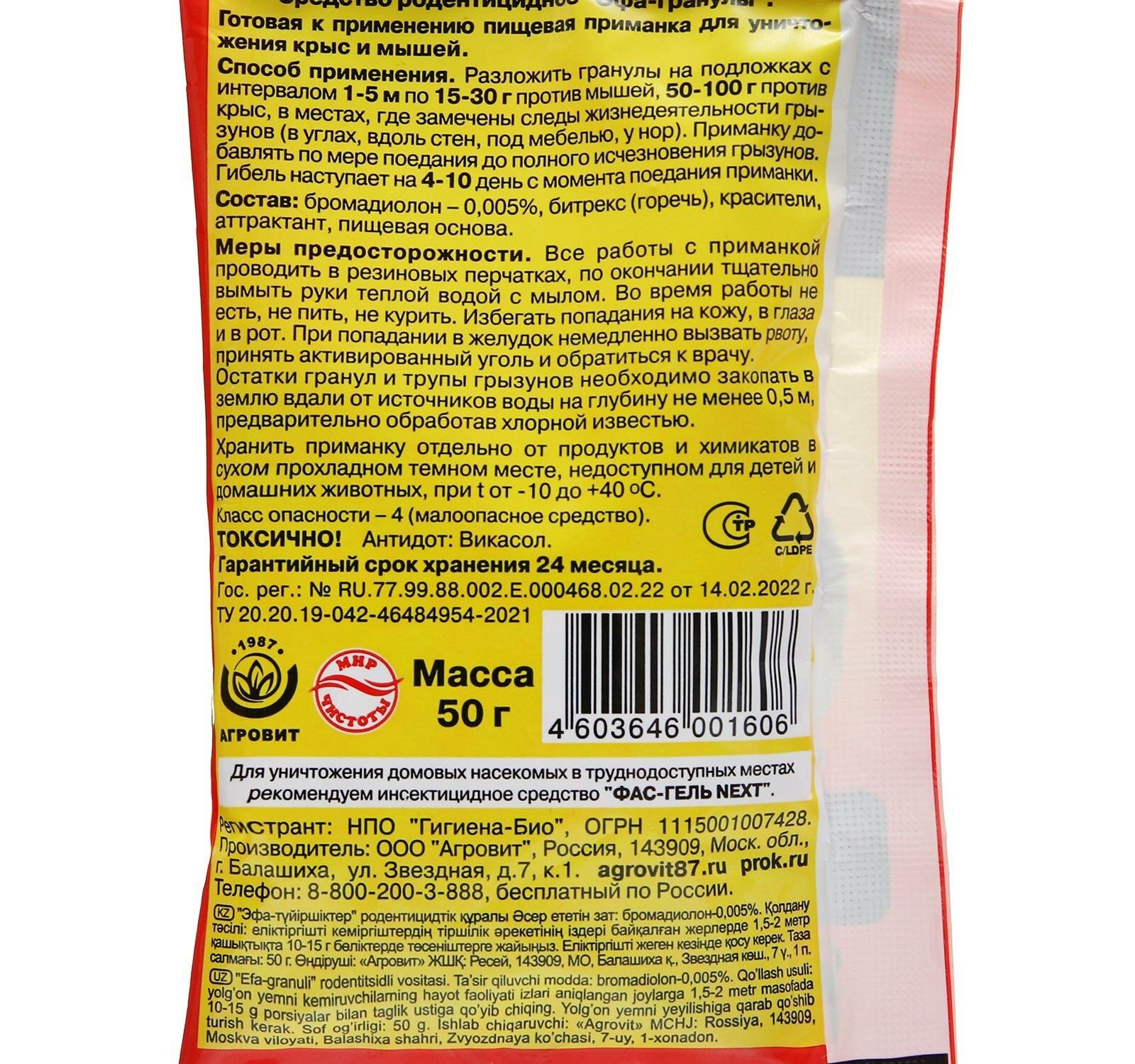 Приманка для грызунов Эфа гранулы для крыс 50г с мясным ароматом интересное: