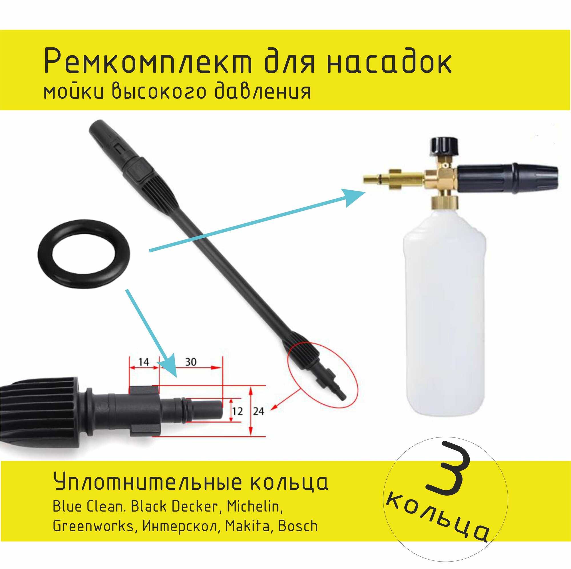 Уплотнительное кольцо для штуцеров насадок мойки высокого давления, 3 шт интересное:
