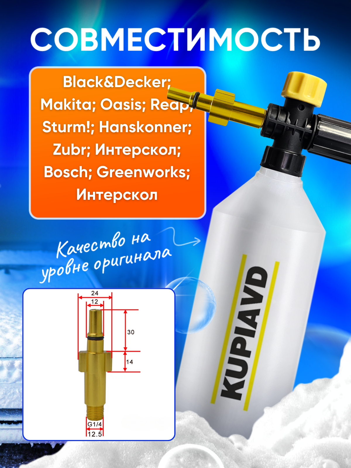 Пенная насадка LS3 для Makita, Black&Decker, Интерскол, Greenworks G1-G6, Bosch от 2013г. интересное: