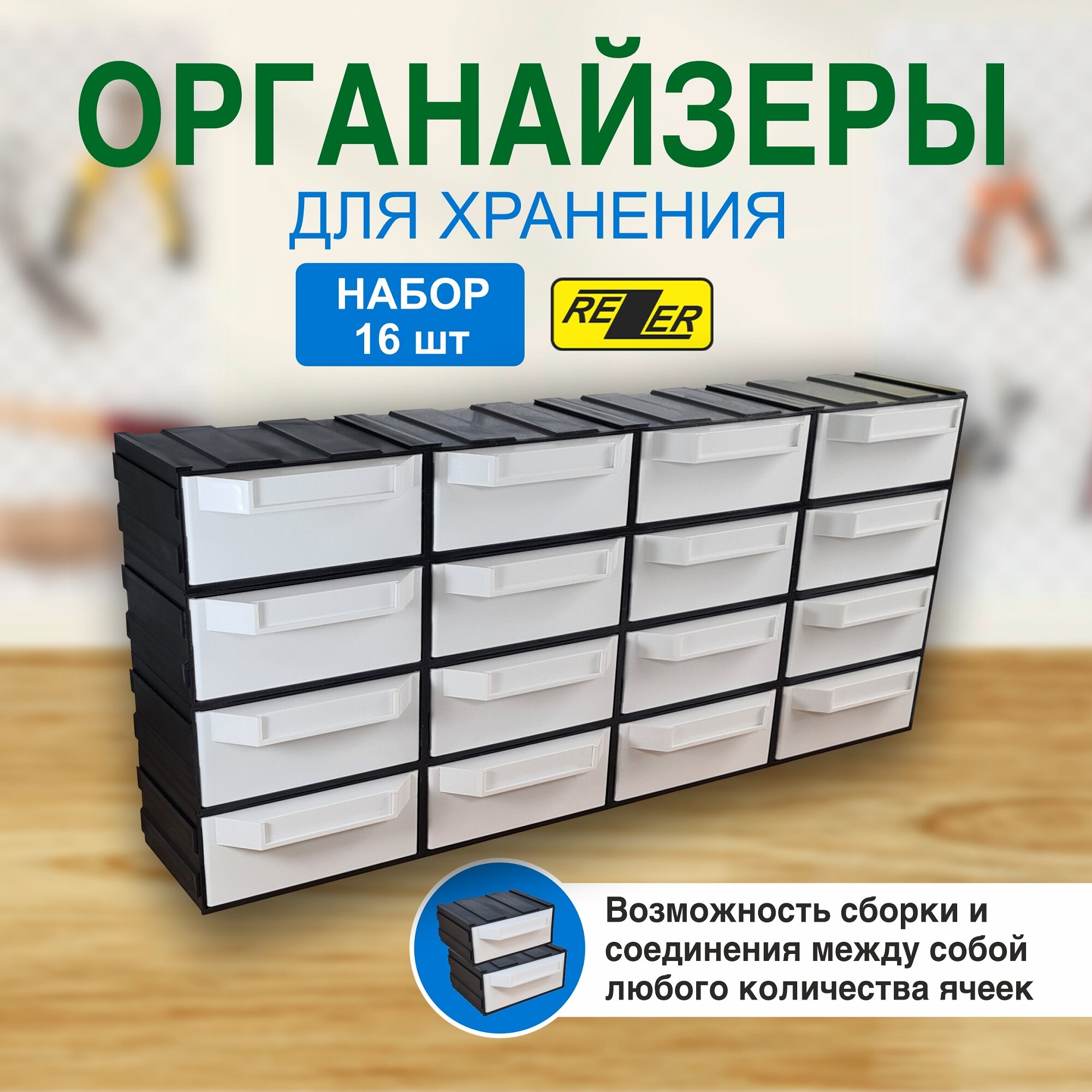 Купить Система хранения Rezer/сборный органайзер/ящик для хранения 16 ячеек, черно/белый