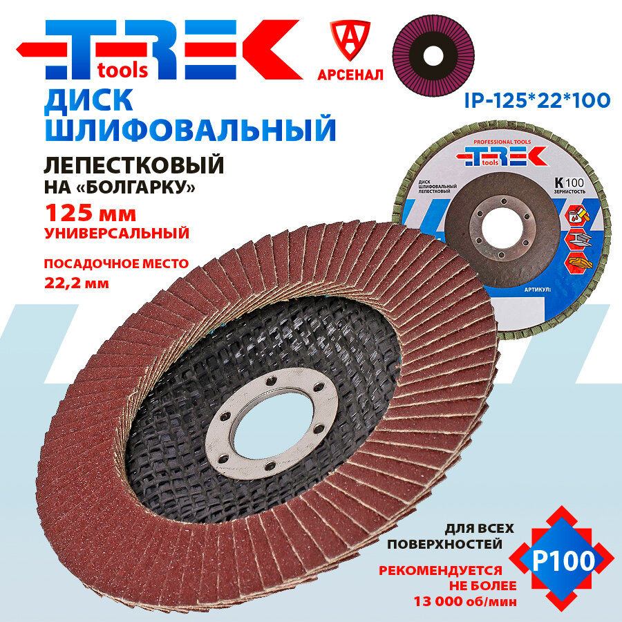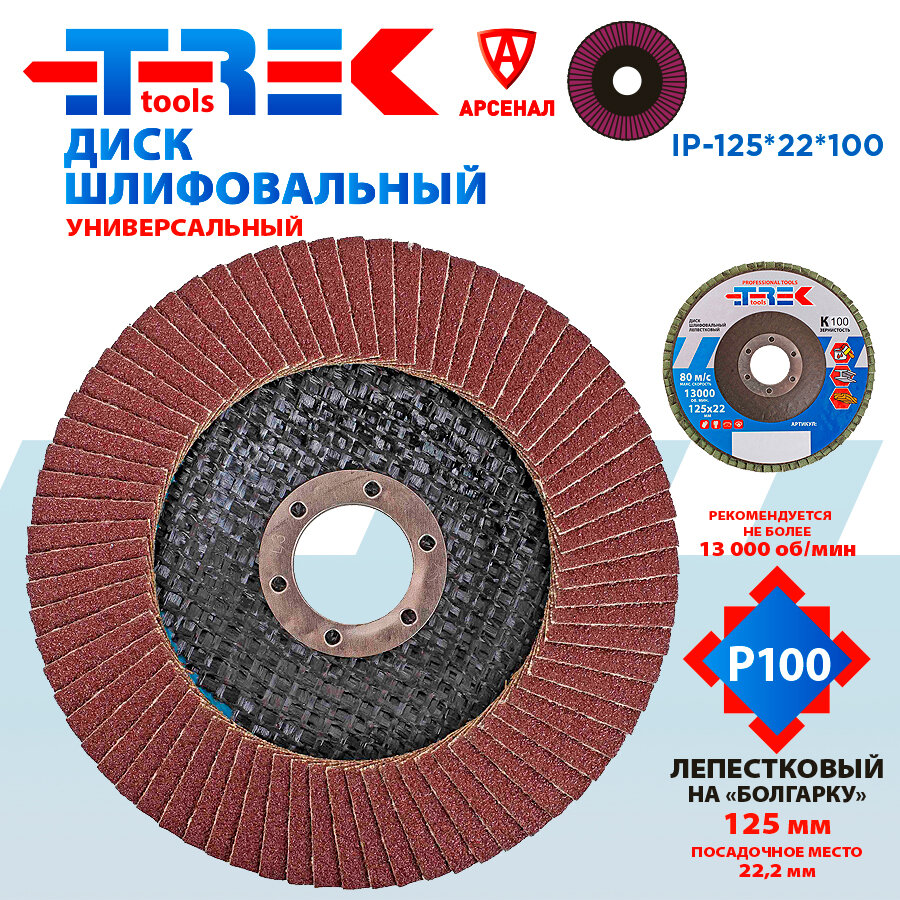 Диск шлифовальный лепестковый К100 на болгарку 125х22мм, IP-125*22*100 интересное: