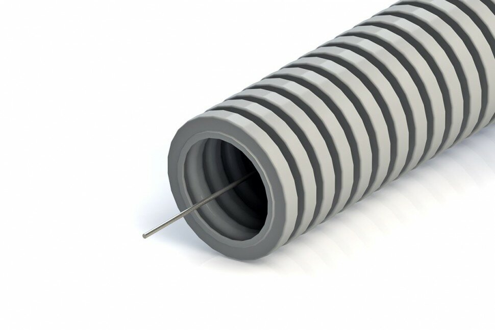 Труба гофрированная ПНД лёгкая 350 Н безгалогенная (HF), стойкая к ультрафиолету серая с/з d25 мм, 10м