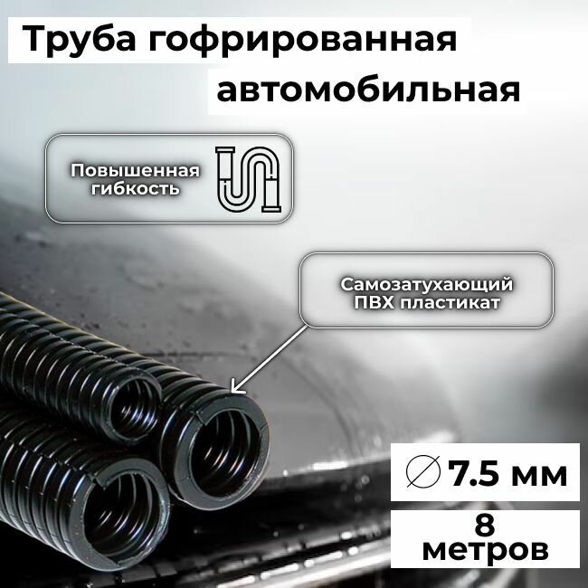 Гофра автомобильная для проводки "Auto Standart" гибкая легкая разрезная, внутренний d7.5мм - 7м