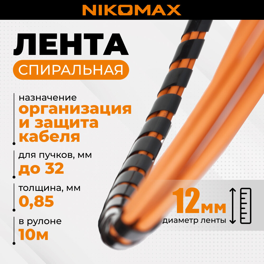 Купить Лента NIKOMAX спиральная 12мм для организации и защиты кабельных пучков 9-32мм, толщина 0,85мм, черная, 10м