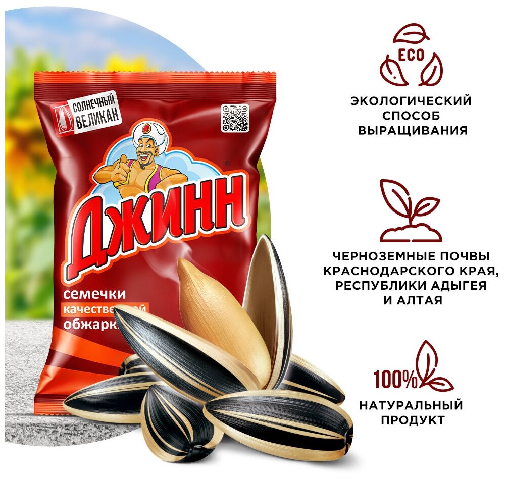 Семечки подсолнечника жареные "Солнечный Великан" ТМ "Джинн", полосатые, 100 г х 9 шт интересное: