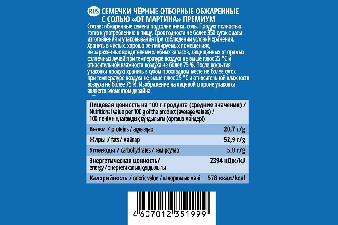 Семечки "От Мартина" отборные с морской солью 200г интересное: