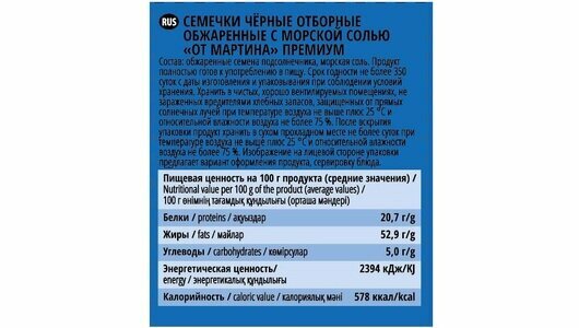 | Состав | семена подсолнечника жареные, морская соль |