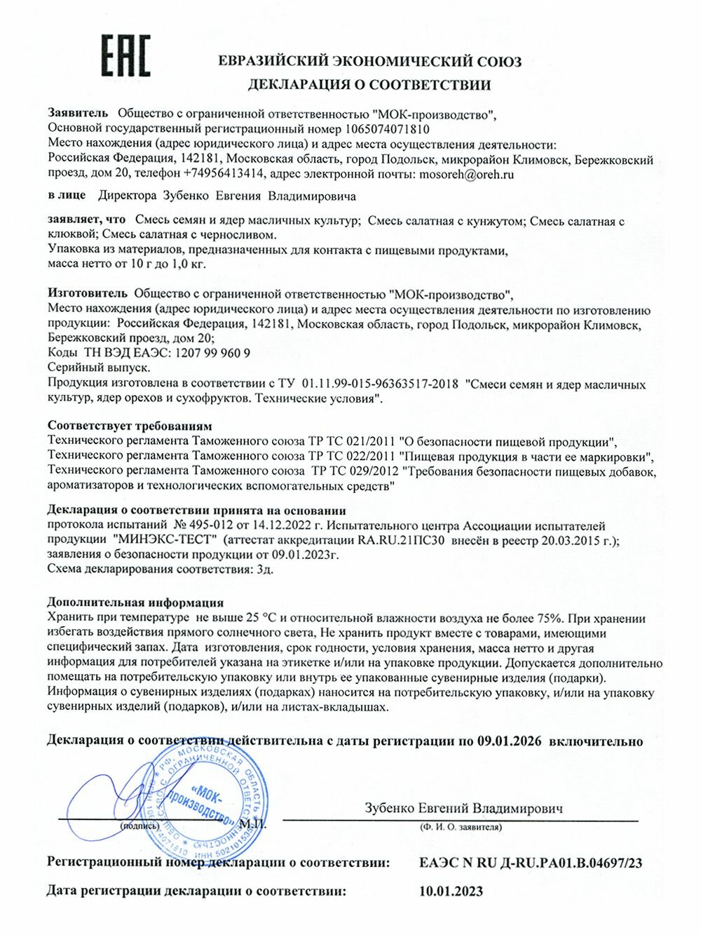 | Стандарты производства | ТУ 01.11.99-015-96363517-2018 |